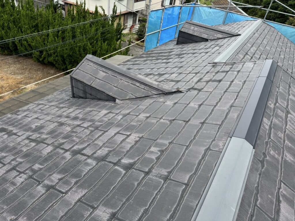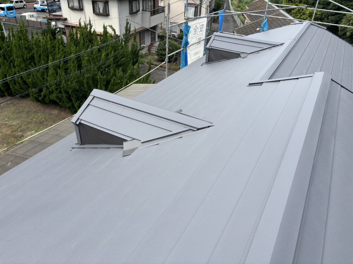 こんにちは、屋根リフォーム相談窓口です。 当ホームページをご覧いただきありがとうございます。 静岡県伊東市で化粧スレートの屋根にシルキーG2をカバー工法で施工しました。 本日は静岡
