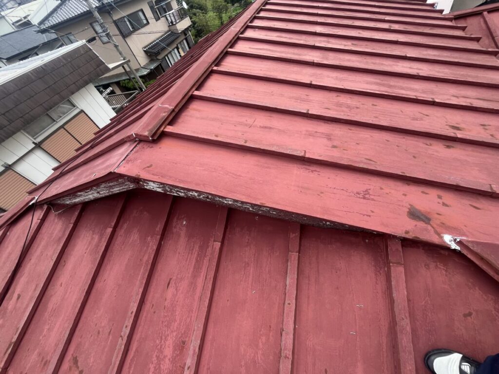 静岡県伊東市 勾配不良による雨漏り 化粧スレートの上にカバー工法で立平葺きを重ね葺き工事 スルガ住研施工