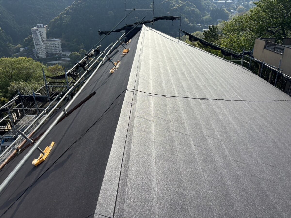 こんにちは、屋根リフォーム相談窓口です。 当ホームページをご覧いただきありがとうございます。 静岡県伊東市で化粧スレートの屋根にシルキーG2をカバー工法で施工しました。 本日は静岡