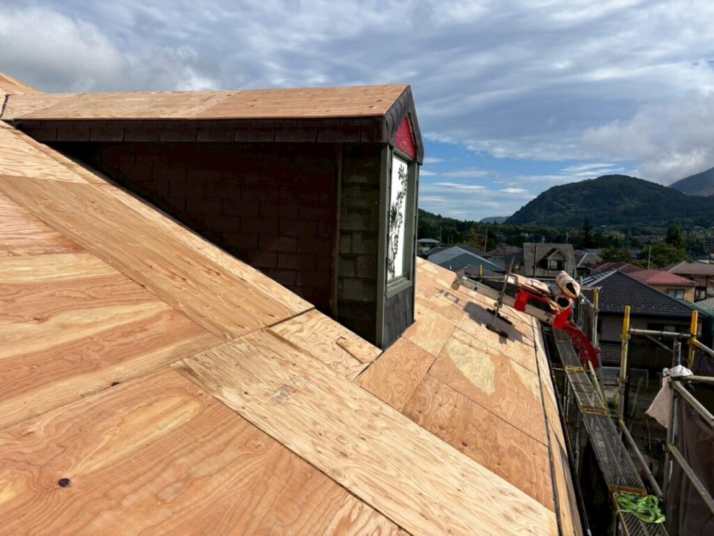 雨漏りによりアスファルトシングル屋根への屋根カバー工事 富士宮市 屋根屋のノブ
