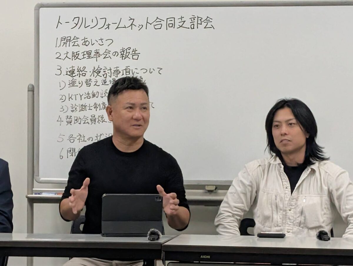 11月6日のトータルリフォームネット支部会は関東と支部会の合同でしたが欠席者が多くなってしまい合同といえ少し寂しい感じになってしまいまいましたが、なんと建築系トップYouTuberの塗り替え道場様が講演に来てくださり大盛り上がりとなりました!小林社長の破天荒なお話しあり私達会員にも即実践可能なお話しありで凄く充実したお時間を頂きました、小林社長と同行で来て下さった足場班兼営業のカンタさんもサプライズ的でしたので、個人的にもとても嬉しく最高な1日でした、私達には真似が出来ないような破天荒な営業方策も、やはりこの様な機会がなければ耳にする事も出来ないので目から鱗の連続で人生の経験値が上がる素晴らしい会となりました、一般社団法人トータルリフォームネットでは毎月このような会を開催していますので、興味のある業者さんを是非ご一報ください!先ずは見学からでも大丈夫です、お気軽にお問い合わせ下さい!!