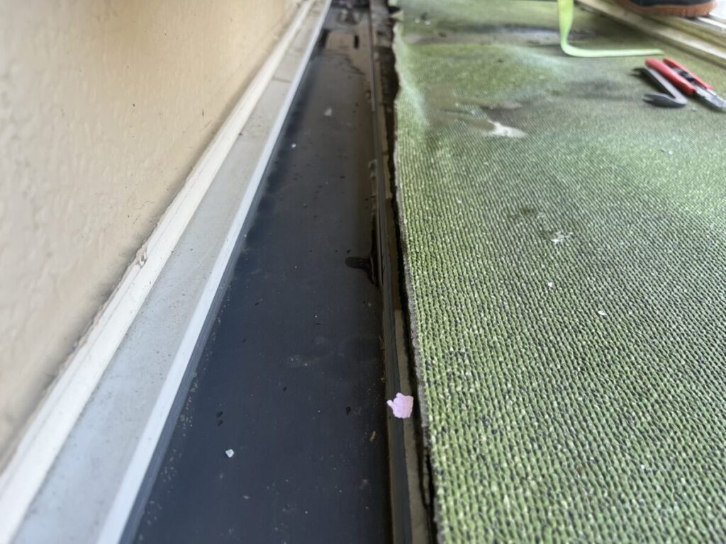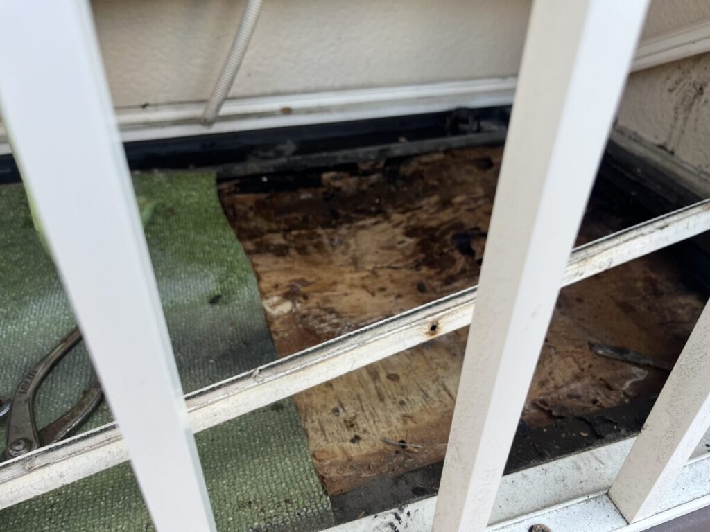 誰もが知っている大手のハウスメーカーさんのバルコニーなのですが床が腐ってズブズブになっていました、お客様からはハウスメーカーにメンテナンスをお願いしたそうですが、かなりの高額だったそうです、今までもハウスメーカーに塗装などの工事をお願いしていたそうですが今回は相見積もりをしてみて金額の違いに驚かれたそうです、漏れた原因は防水方法です合板が床にひいてあり、そこに防水の塩ビシートを貼ってあるのですが、防水シートの隅、端は必ず立ち上がりで終わり防水するのが常識ですが、こちらの現場では合板の上に貼っただけで立ち上がりゼロでした、コレには私も驚きました、どうやって直すか考えた末に立ち上げ出来る様に下地で細工をして、粘着層ルーフィングと板金で仕上げる事としました、仕上がりは後編に続きます。
