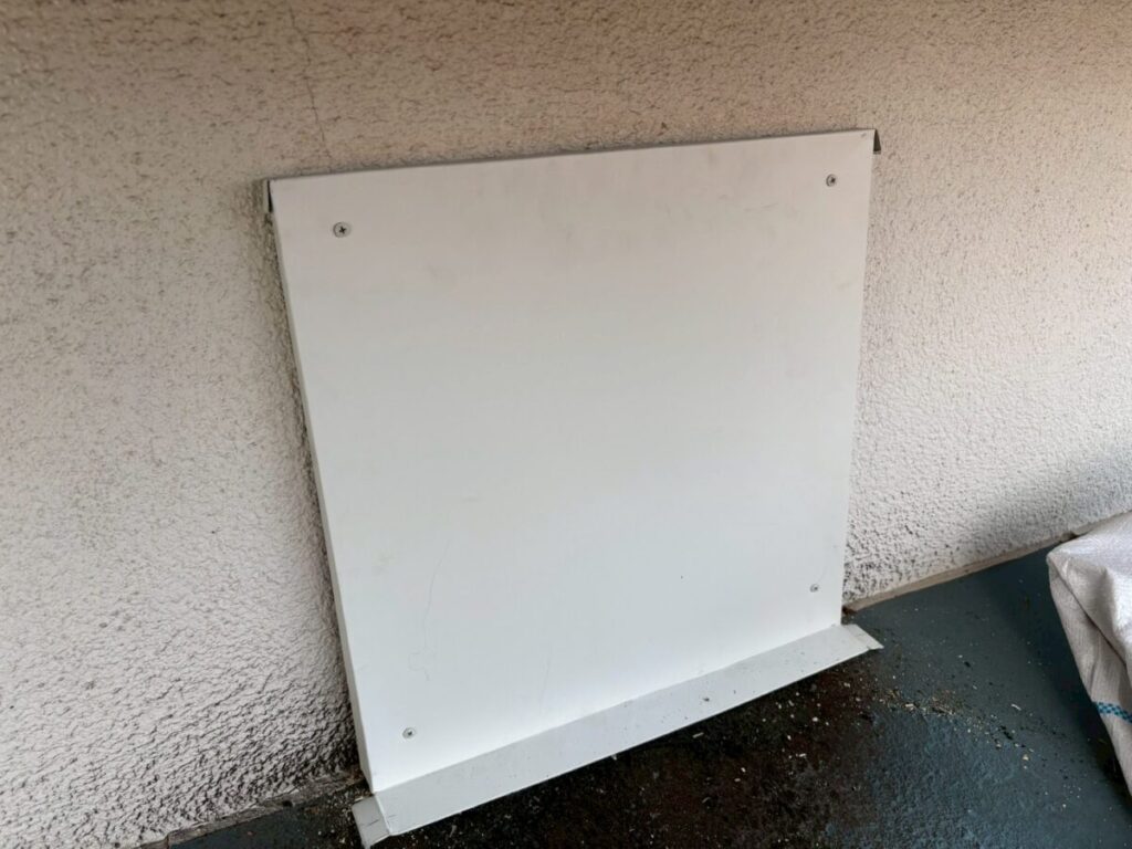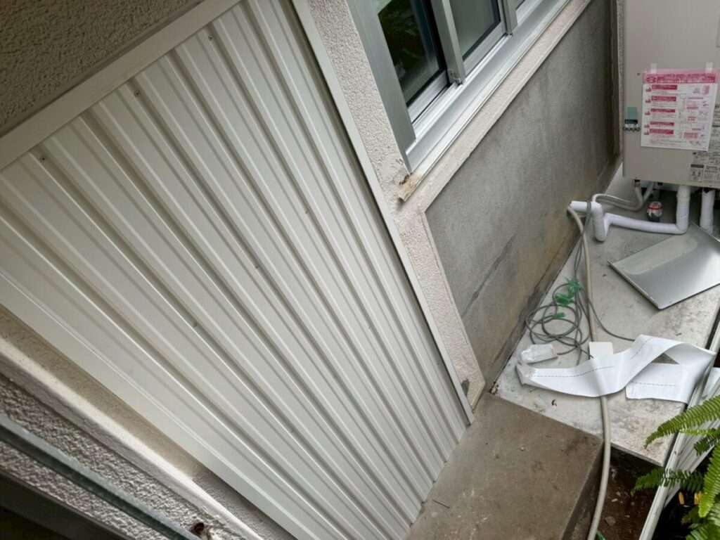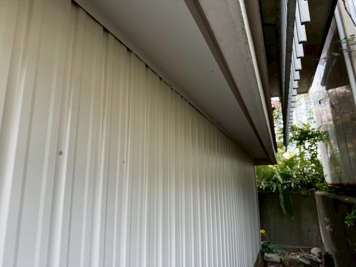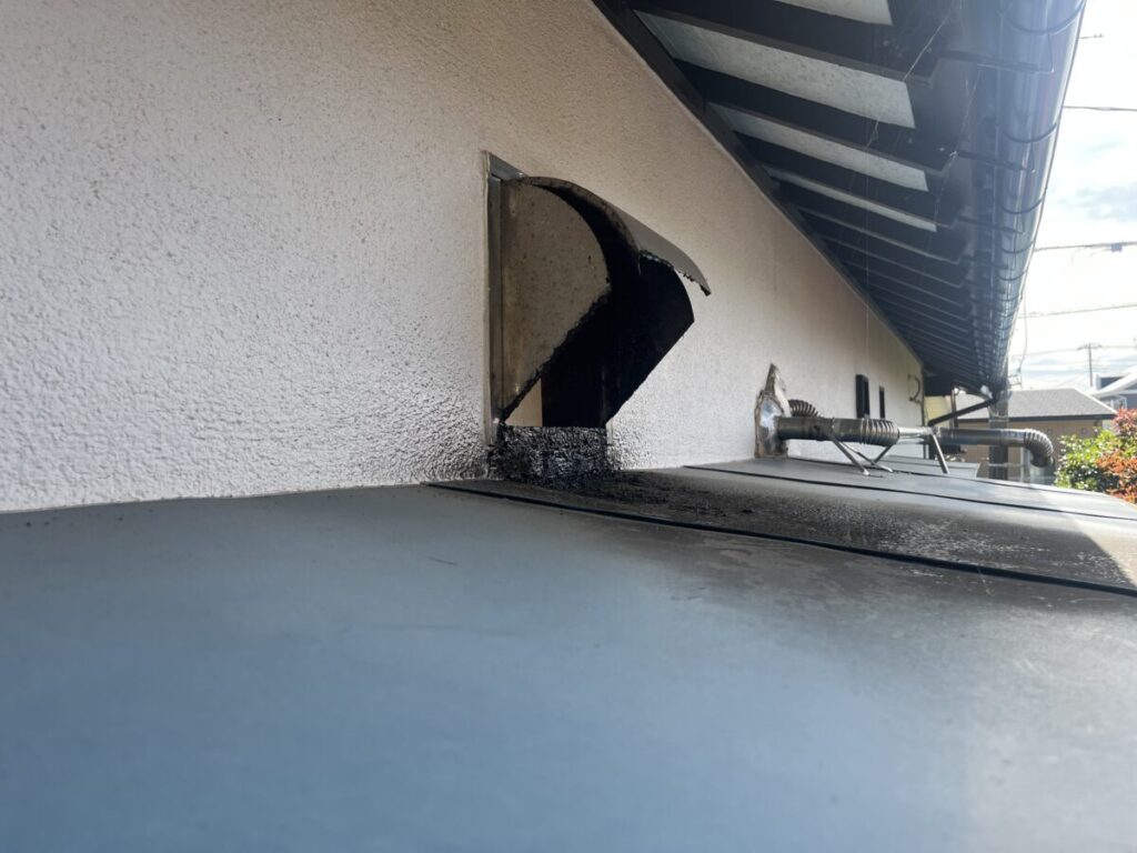 私達は住宅会社さんの下請け仕事も少しやってまして今回は大工さんが内装を大々的リフォームしていてそれに伴って外装の補修的な事を致しました、換気扇フードを潰して板金を貼る作業は分かるのですが外壁は何故角波板金を貼るのかなどは謎です、最後の細長い部分は勝手口が付いてて潰したのだろうとは思いますが、下請け仕事となると言われた事をやるだけですので理由など必要はありません、新築工事をやっていた時もそんな感覚だったのを思いだし、なんだか懐かしい感じがしました。