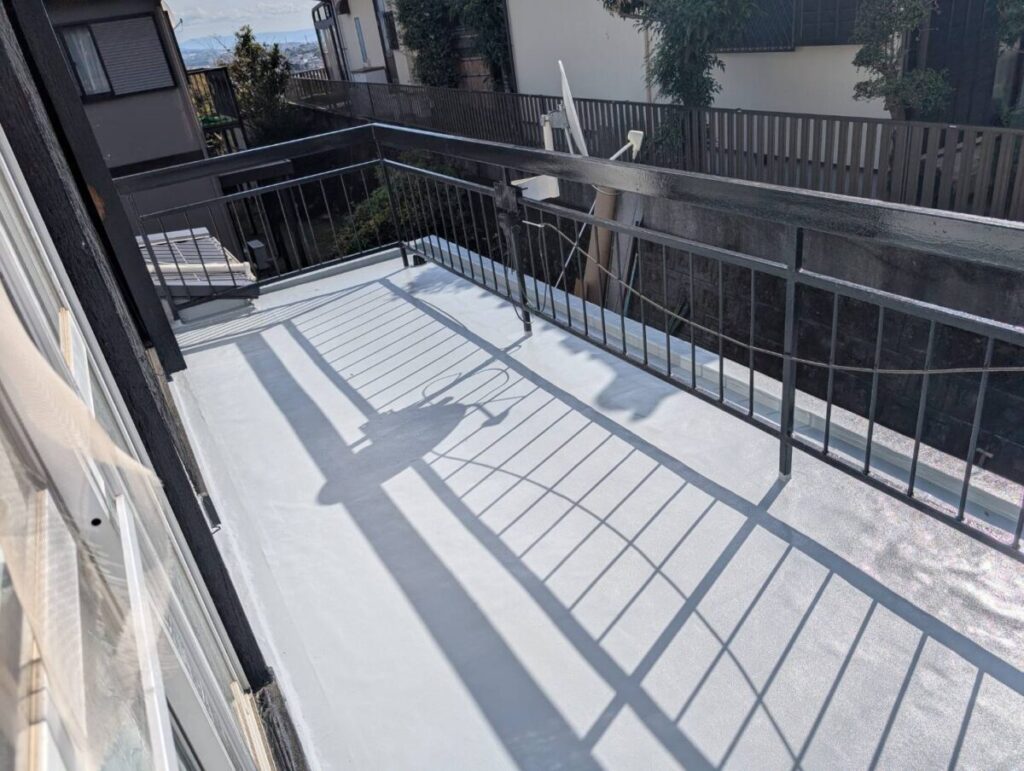 保護モルタル防水の上にウレタン脱気工法の防水工事 富士宮市 屋根屋のノブ