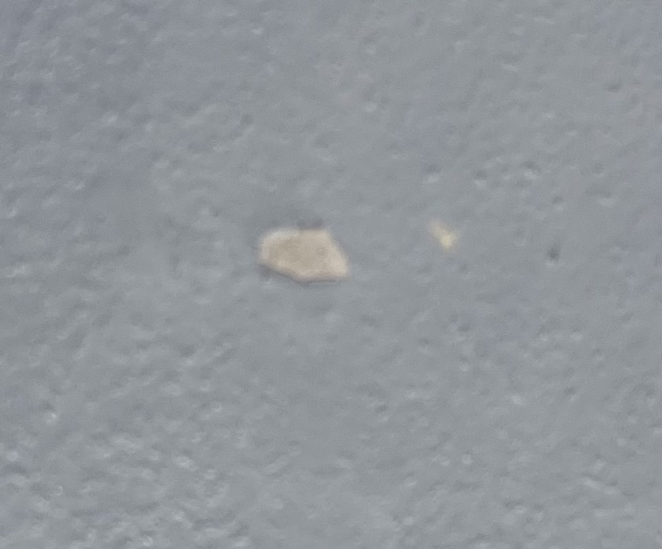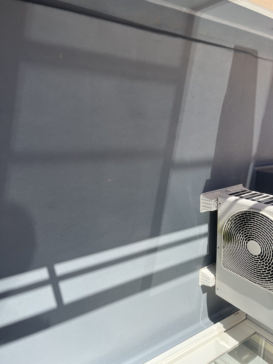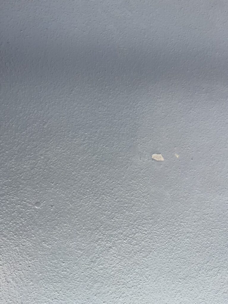 半年程前に仕上がった現場のお施主様からお電話がありバルコニーのトップコートが剥がれてしまったとの事で確認に行ってきました、長さが10m位ある大きなバルコニーなので探すのに苦労しましたが、有りました直径1センチ程の剥がれが確認出来ました、塗装工事中はバルコニーが足場でジャングルジムの様になっていたので工事の不具合が起きたと思われます、ここはタッチアップでいけそうな感じもしますが、やはりコチラのミスなので少しでも違和感がない様にトップコートをワンセット発注して全体的に塗り直す事と塗装職人との話し合いで決定いたしまして塗り直すこととなりました、バルコニーの床の特にFRPは剥がれやすいので細心の注意が必要です。