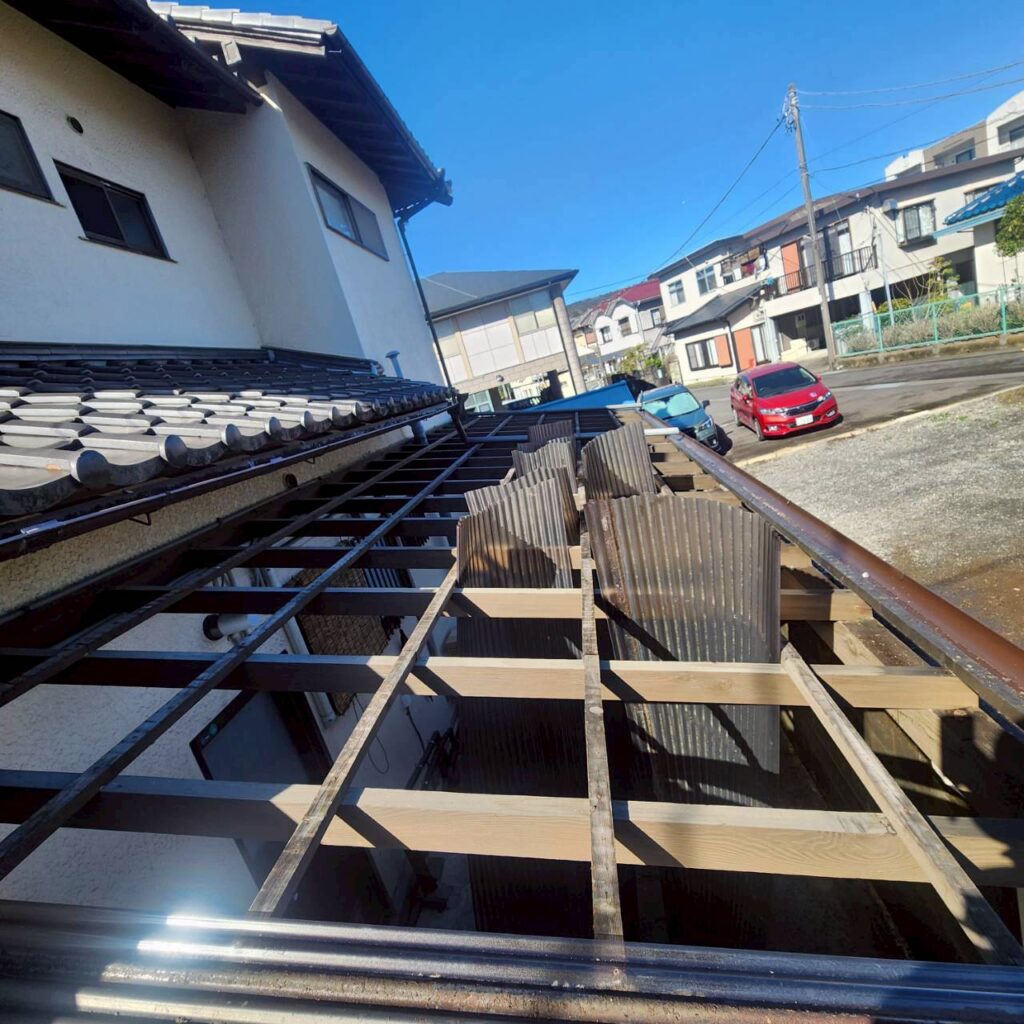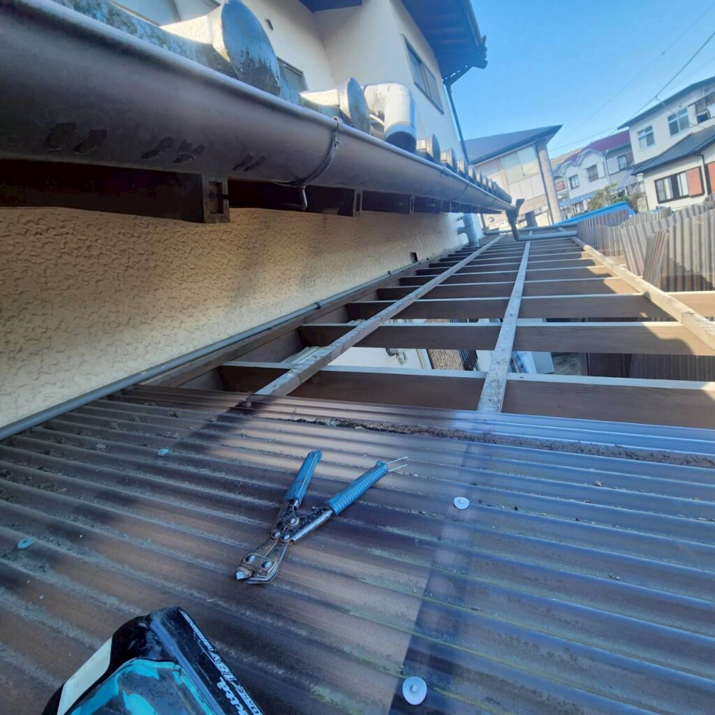 ポリカーボネート波板を取り外し、新しい波板へ張り替えを行いました。