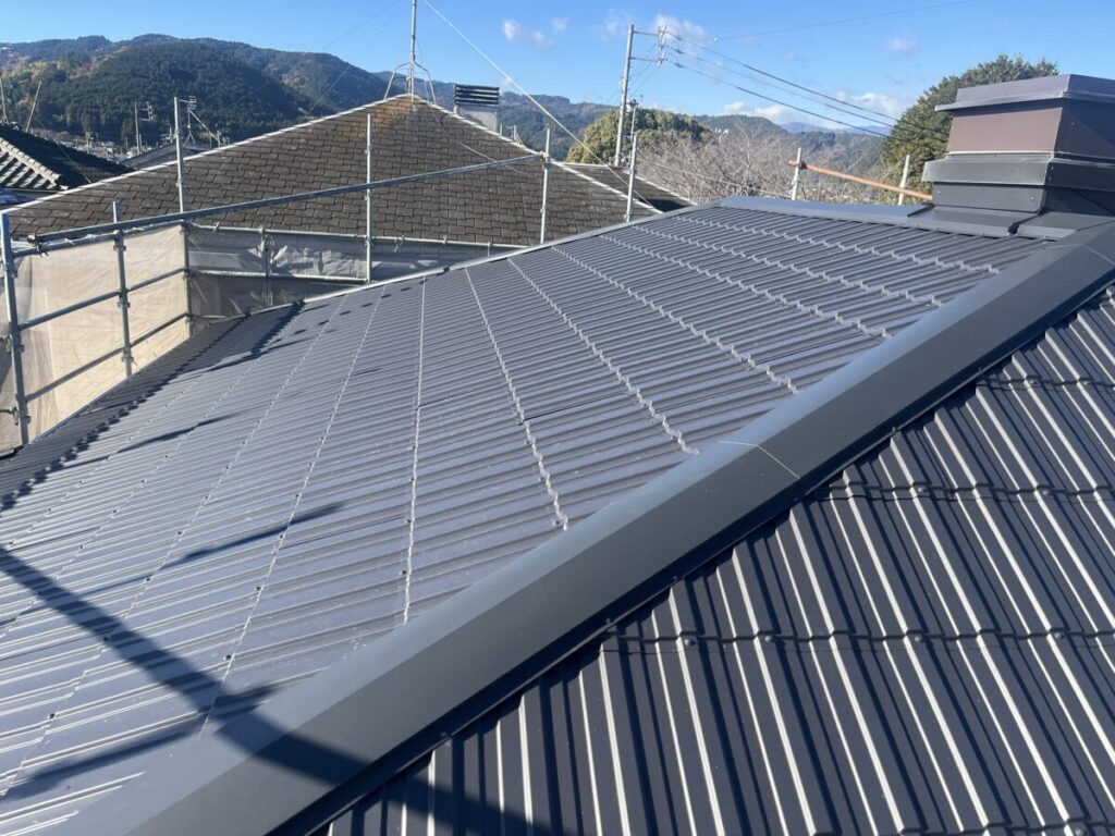 屋根カバー工事 レクトプルーフの完了確認 富士宮市 屋根屋のノブ