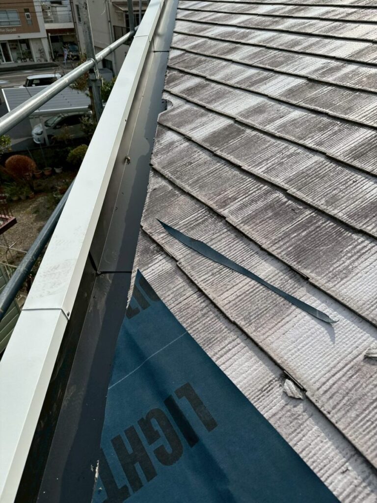 今回の工事では、谷部分を新設し、落ち葉対策も含めて見直しを行っています。