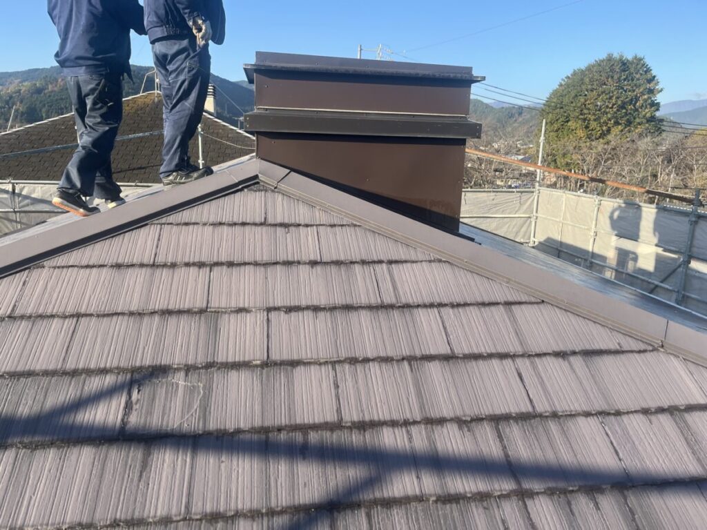 本日から始まった屋根カバーの現場の初日の打ち合わせに伺いました、細かい内容は特に伝えませんがポイントだけ職人に伝えます、今回のポイントは部分的に勾配が強い面があるので親綱を貼る事と屋根上の煙突型の飾りの収まりと荷上げ機の設置場所と玄関ポーチの壁際の収まりを打ち合わせ致しました、コチラのお宅は雨漏りの為にカバー工事をするのですが、塗装をしておけば大丈夫だと思っていたのに雨漏りしたのはおかしいと思いYouTubeを見ていたらウチのYouTube動画屋根屋のノブに辿り着き、ご連絡をいただきました。