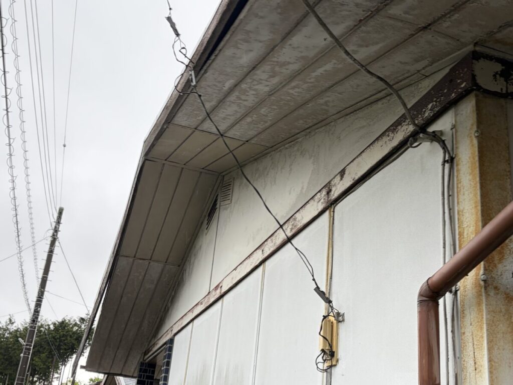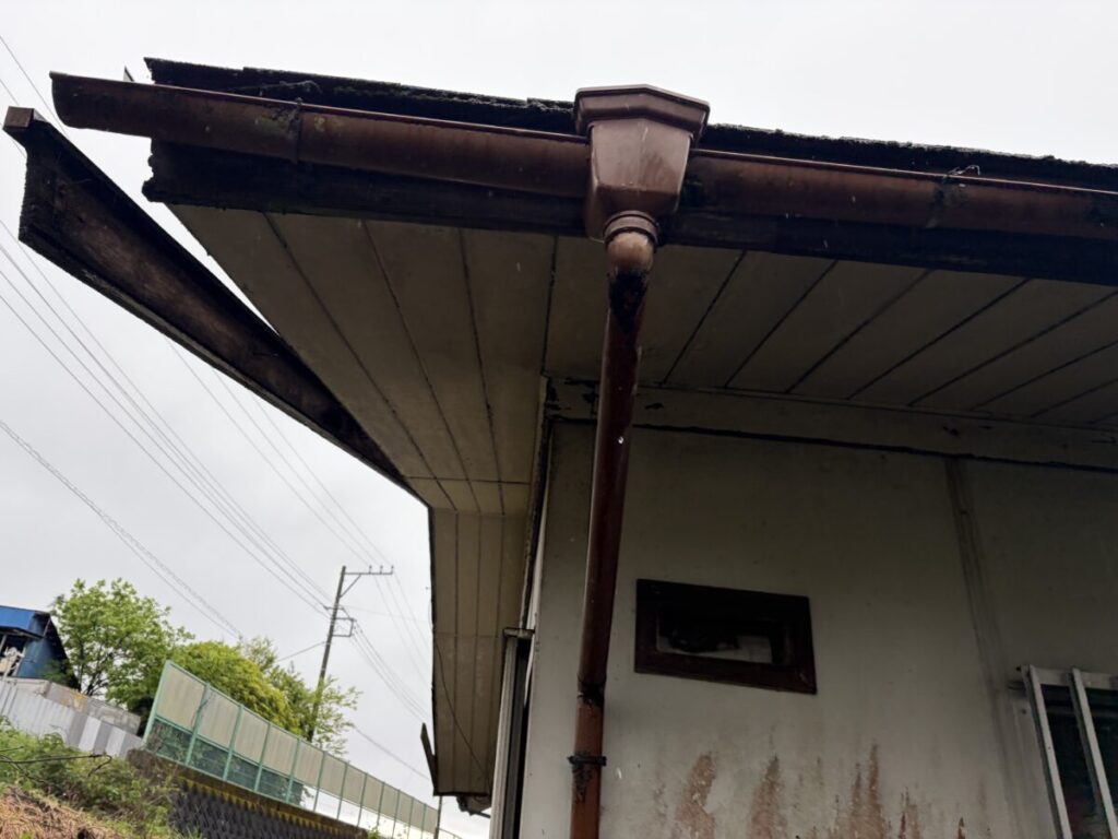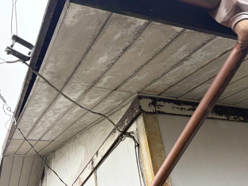 今回の現場で印象的だったのは、ここまで症状が進行していたにもかかわらず、下から見た時に異常が非常に分かりにくかったことです。その理由は、軒天が板金仕様だったためでした。通常であれば、屋根の不具合が進行すると、まず軒天が傷み、腐食や破損が起こり、それがひとつのサインになります。しかし今回は、軒天に板金が使われていたことで、見た目にはほとんど異常が現れていませんでした。