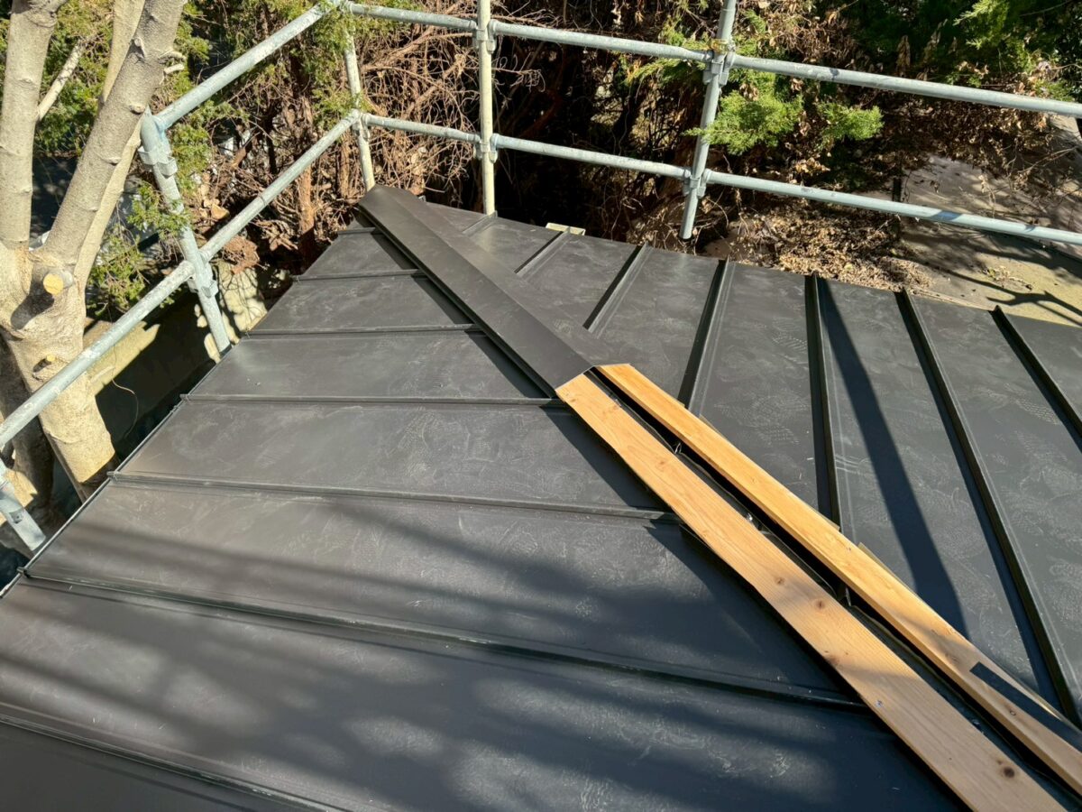 立平葺きは、1枚の板金を上から下まで通して施工する屋根工法で、