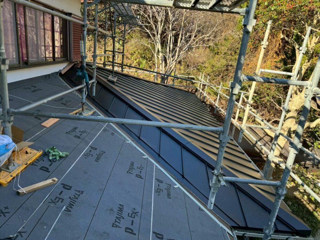 現在、立平葺きカバー工法を行っている現場の途中経過です。