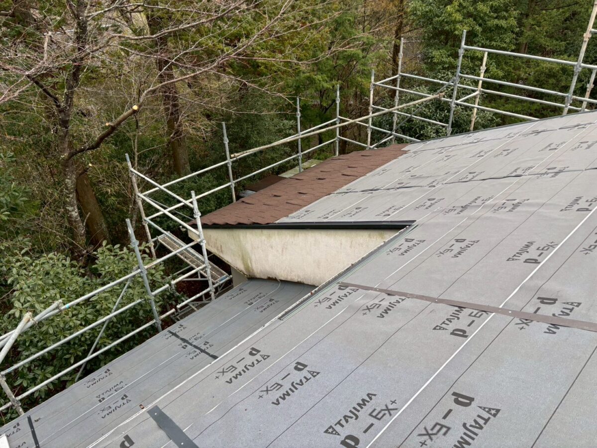 工事初日はルーフィング施工を中心に進めました。
