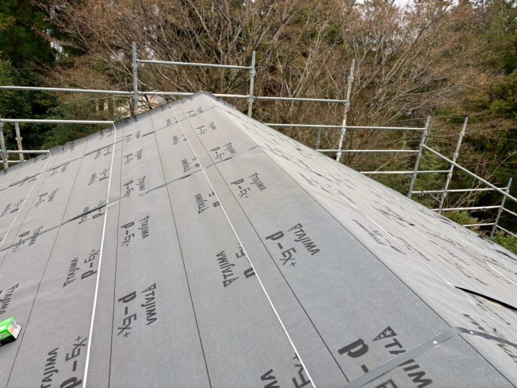 工事初日はルーフィング施工を中心に進めました。