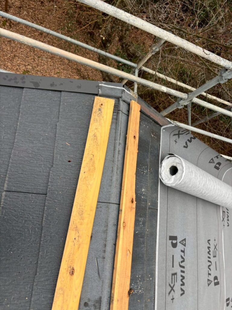 既存の棟部分を確認したところ、過去の補修時にルーフィングがしっかりと施工されており、その影響で下地の状態は非常に良好でした。