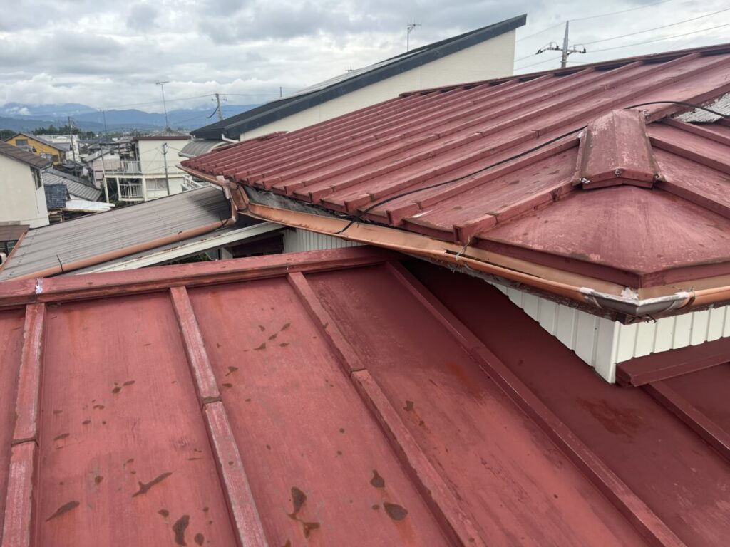 最近は大雨が多く雨漏りのお問い合わせが急増しています、コチラのお客様は一階のバルコニーの下の部分の天井から雨漏りしているのでバルコニーに原因があるのでは?とお客様に質問されましたがバルコニーには原因が無いと思われる感じでしたのでバルコニーに出る為の吐き出し窓だと思いますとお答えしました、バルコニーにはテラスが着いているので通常は吐き出し窓からも雨漏りはし難いのですが、バルコニーに沢山の水が横から入ってまして原因は雨樋の壊れで、では何故雨樋が壊れたかと言うと2階の大屋根が雨漏りしていて室内にはまだ水は侵入していませんが軒先部分と鼻隠し板が腐ってしまい雨樋を吊っている樋吊りが外れてしまったと言う何とも間接的と言うか順々にいろんな箇所が壊れ一階の室内にと言う感じの雨漏りでした。
