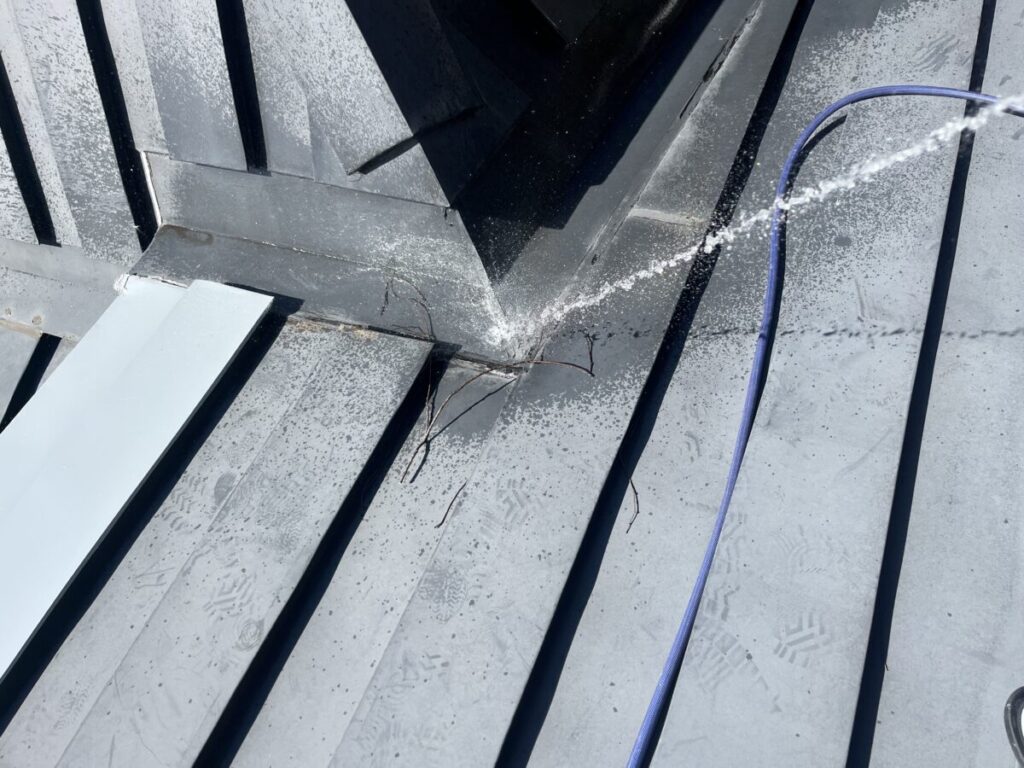 ばかりです。先日雨漏り工事を行なったお客様より大雨の時にお電話があり直ぐに確認に伺いましたところ、初めに伺った箇所の雨漏りは止まって居ましたが普段漏らない箇所から2箇所雨漏りしていました、原因は完全に違う箇所にあるのですがお客様からしたら私共が工事方法を間違え漏れる箇所が変わっただけだと思われると思います、事情を説明して原因は違う箇所なので後日水掛けしてご報告と修理の見積もり提出をお約束し本日水掛け調査を致しました、2箇所とも原因は判明致しましたが1箇所に関しては2つの原因があると考えられそれは雨漏り箇所に近い部分を修理しないと断定出来ないので怪しい部分も一緒に修理するのか2回に分けて修理するのか、雨漏りはとても難しい選択