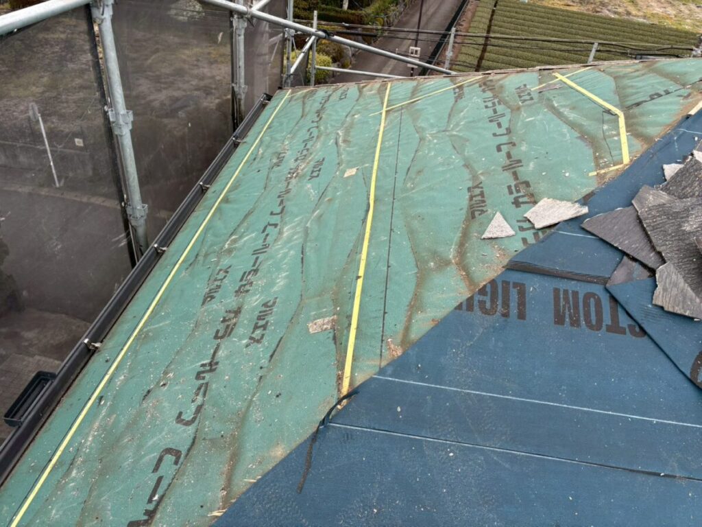 この日は残っていた部分もすべて、コロニアルの撤去から合板張り、ルーフィングまでを仕上げることができました。