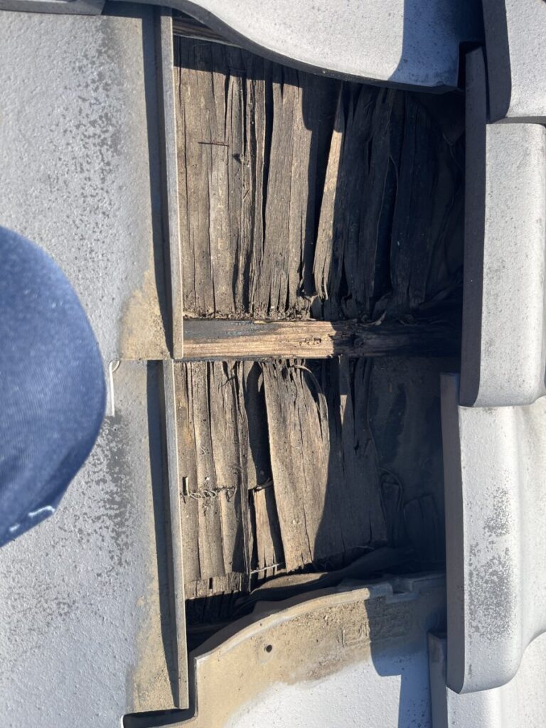 谷下部分の瓦を取り外して内部を確認したところ、