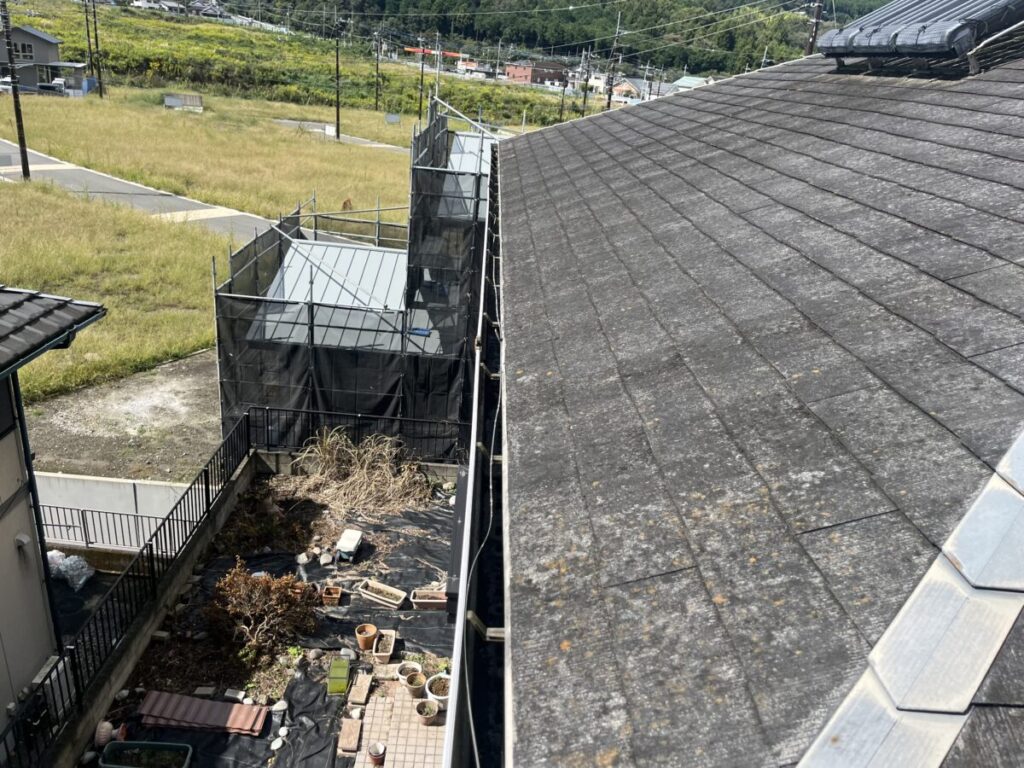 本日の現場調査は屋根と外壁の塗装のご依頼で伺いました、先ず屋根に上がらせていただきまして直ぐに化粧スレートの割れや反りがない事から30年位前かな?と思いました、塗装も一回もされて無くとても良い状態な事を確認し、お客様に築年数を聞きましたらやはり30数年との事で、勘違い塗装辞めようの小冊子を、お渡しして見た目だけの塗装は出来ますが寿命は落ちるし既に下地ルーフィングの寿命は過ぎてますので塗装後直ぐに雨漏りするリスクを説明し塗装の見積もりは無くなりました、お客様からしたら30年以上放ったらかしなので、さすがにメンテナンスの意味で塗装をしたかったそうです、塗装は逆効果だと思わなかったそうです、この間違った知識は10年毎に塗装していかないとダメになってしまうと言うリフォーム業者さんや塗装屋さんの意見であり、コチラの様に何もしてないからこそ30年以上経っても雨漏りも無く大丈夫な事を見せてあげたいですね。