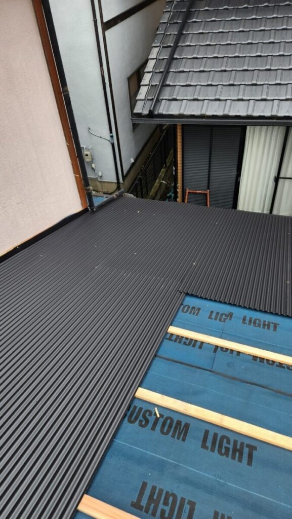 角波のカバー工事は、当初は塗装を検討していましたが、渡邉さんの説明で角波を貼ったほうが良いと思いお願いしました。