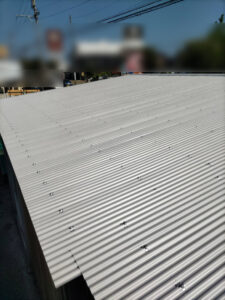 雨押さえを取り付けました立ち上がりは少ないので雨押さえと一体型で作りました、この立ち上がりが大きい現場とかは角波やサイディングなどの外壁材を貼ったりもします。