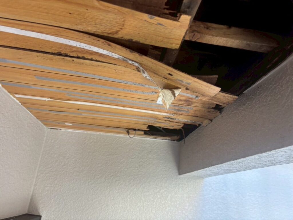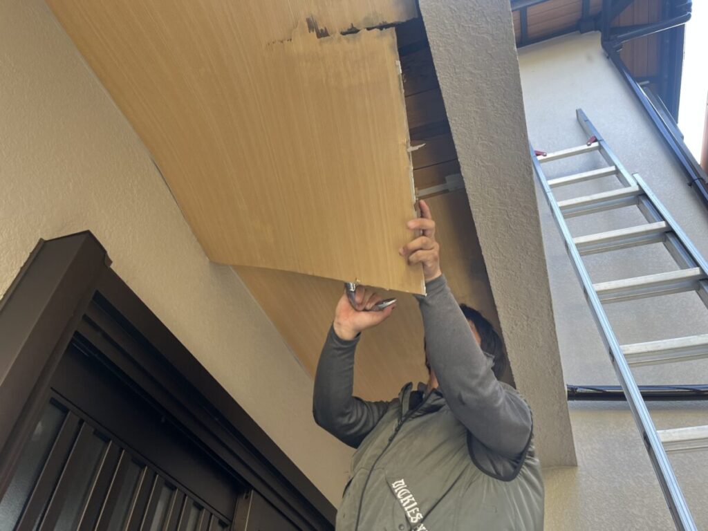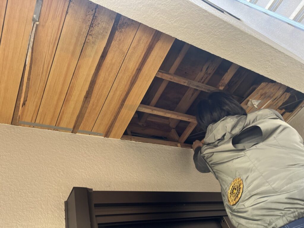 軒天を解体し雨漏り箇所確認