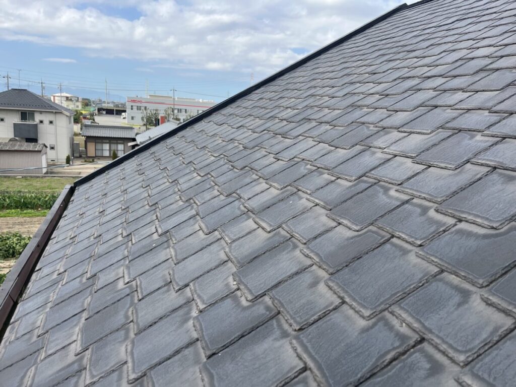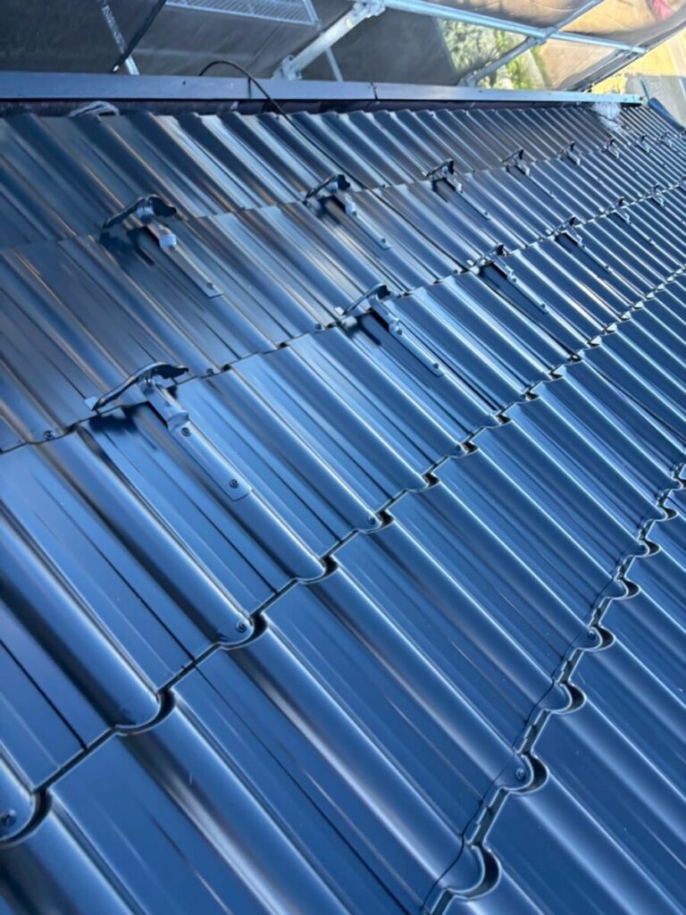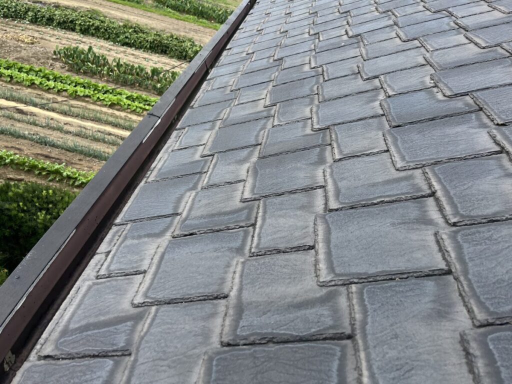 今回初めてマックスハイプルーフを施工するので見た目の感じを凄く楽しみにしていましたが、予想通りとてもカッコいいです!コチラのマックスハイプルーフは、いつも使っているシリーズの上位モデルの為1割程金額的には上がってしまうのですが厚さも0.6mmと通常の商品より厚く表面のフッ素塗装のフッ素の含有率も多いと言うメリットも大きい商品です。