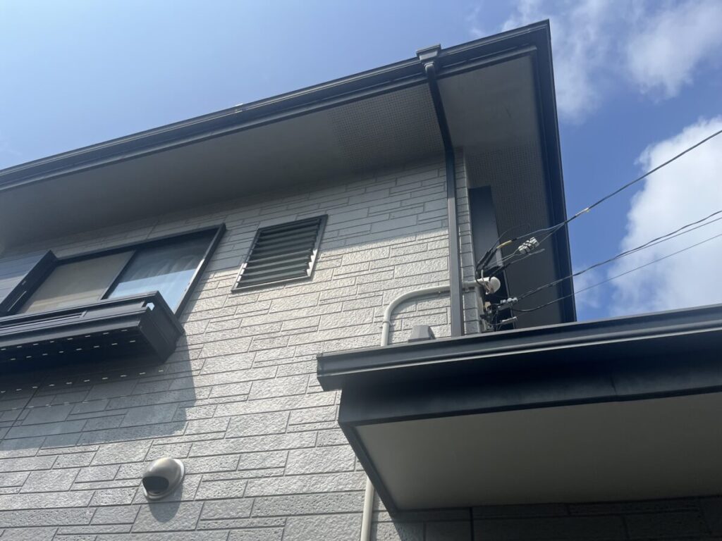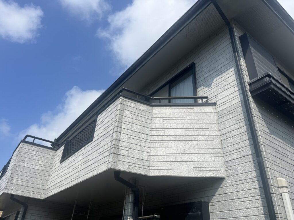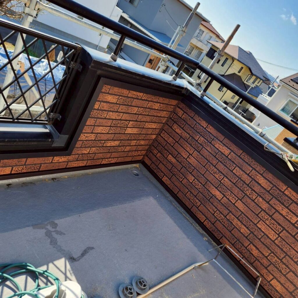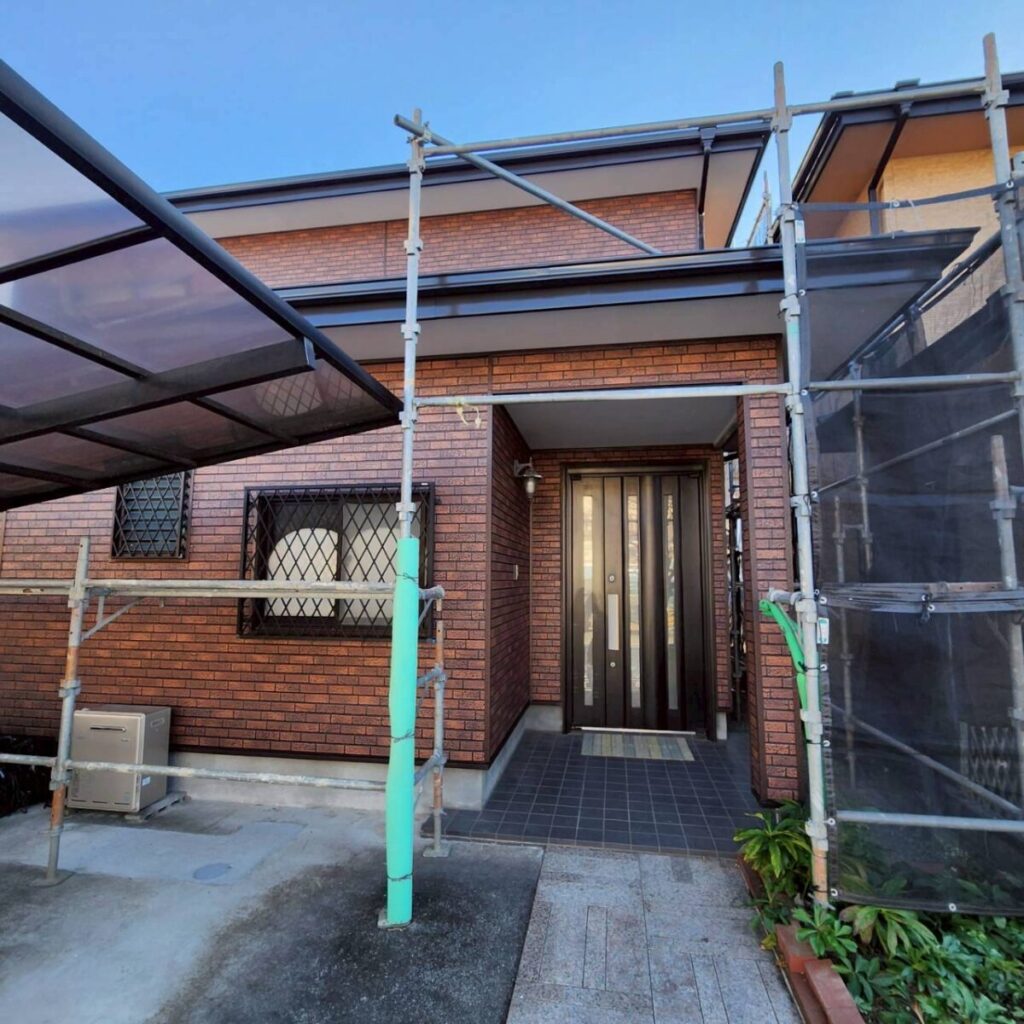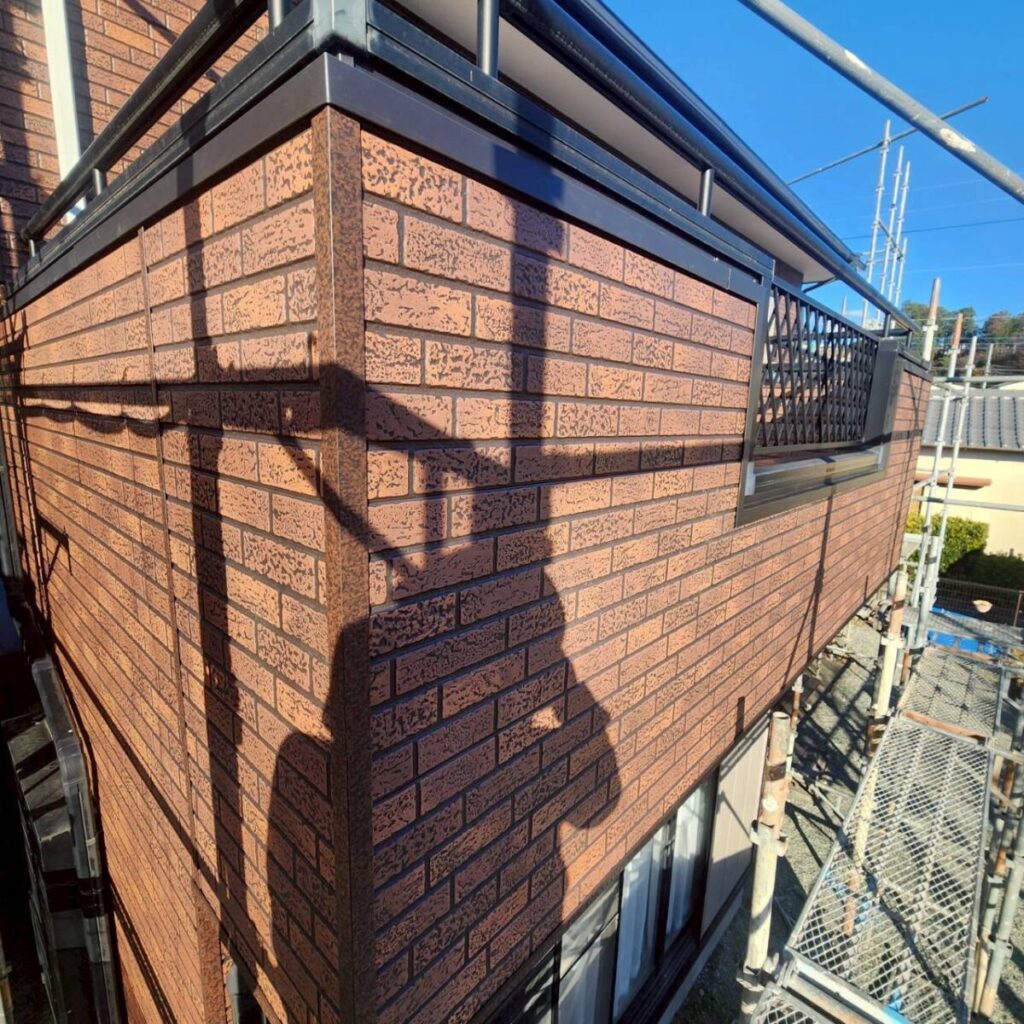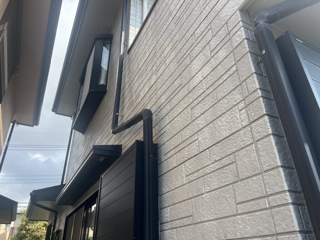 外壁の柄は単色からタイル柄へと変わり、塗装では再現できない立体感のある仕上がりになります。金属サイディングは防水性・防音性・断熱性が向上する工事で、金額は上がりますが、それ以上に安心感と耐久性を重視した外壁工事だと考えています。