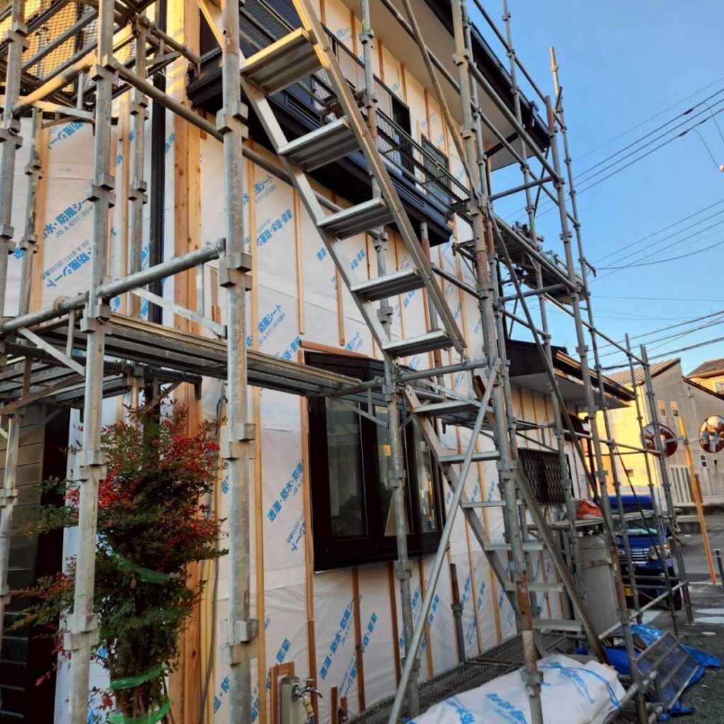 透湿シートを貼り終えたあと、木材で下地を組んでいきます。この透湿シートを貼らない業者さんもいますが、後から直すことができない工程のため、私たちは必ず工事内容に組み込んでいます。