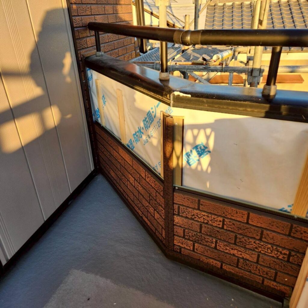 中でも特に気を使うのが、バルコニー外壁とかさぎ下の収まりです。この部分は雨が集中しやすく、施工の良し悪しがそのまま雨漏りに直結します。かさぎの下は水の流れと逃げを考えながら、板金と本体を一体で納め、見えなくなる部分ほど慎重に仕上げています。
