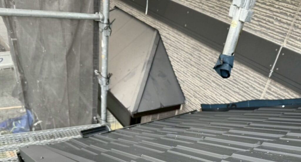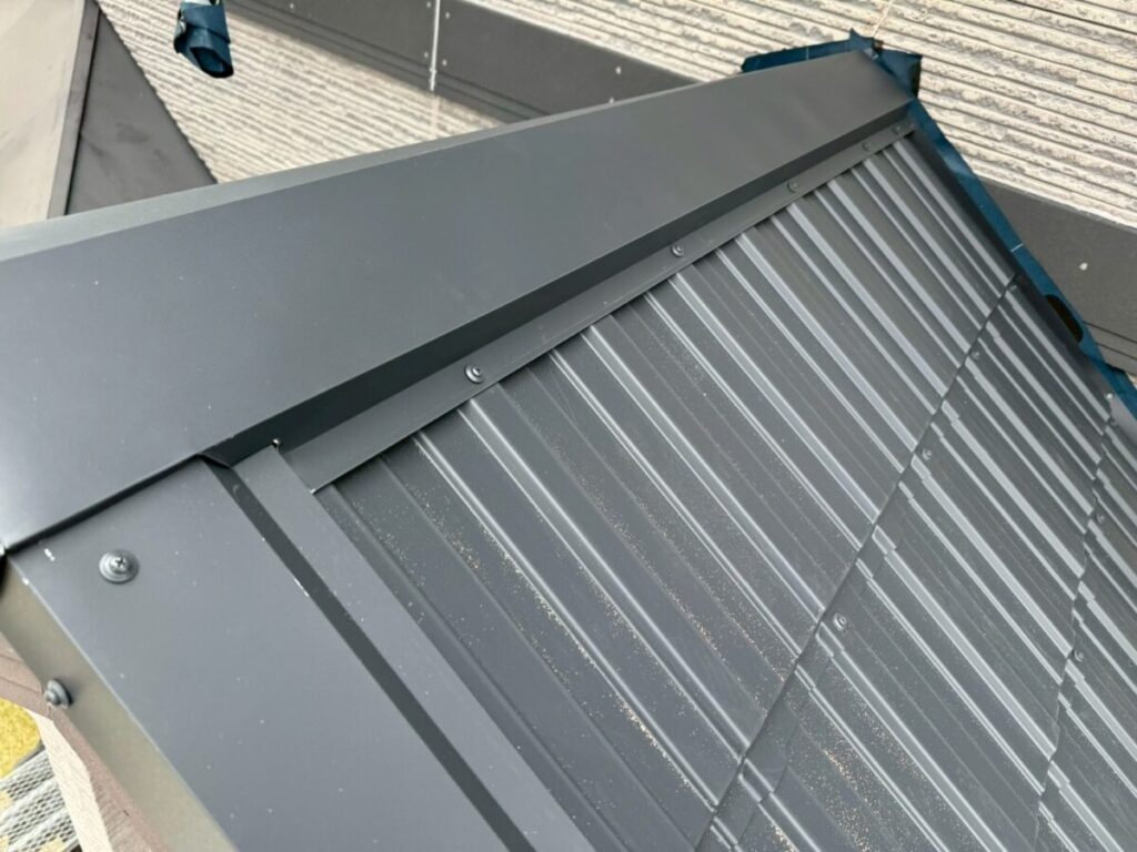 また、壁際などの取り合い部分についても、板金や役物を使って防水処理を行い、見た目も納まりもきれいに仕上げています。