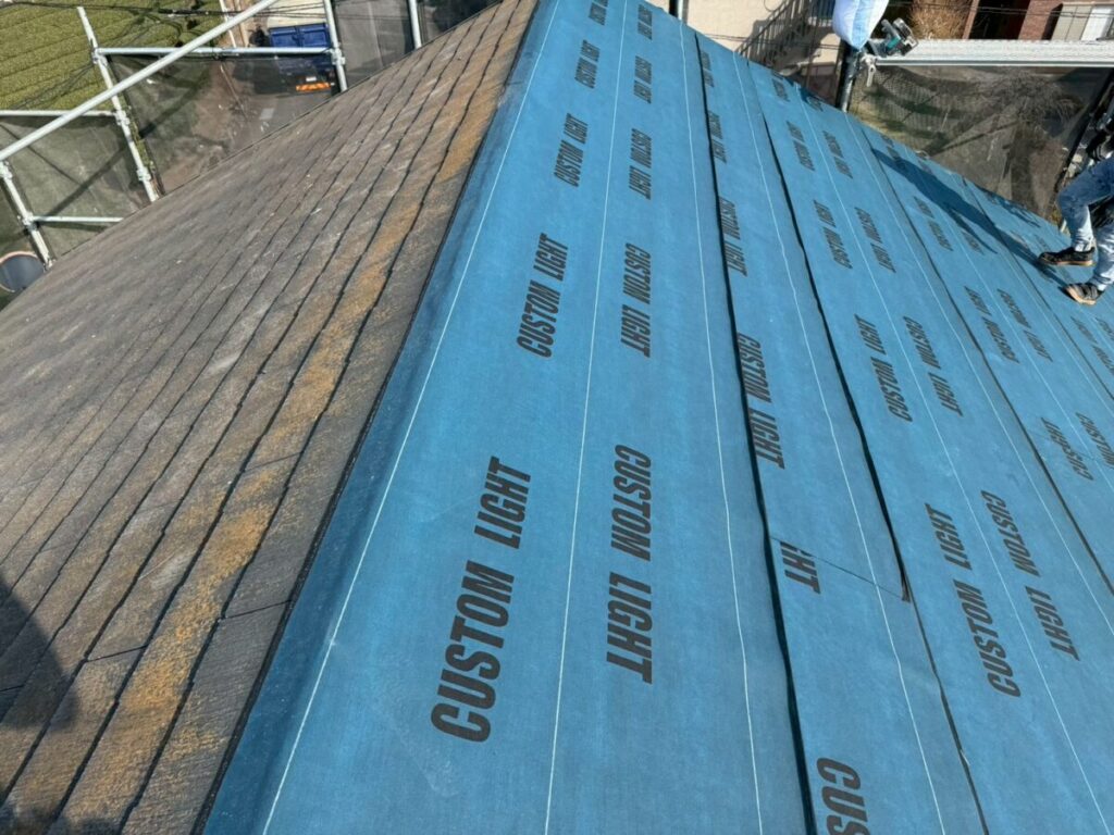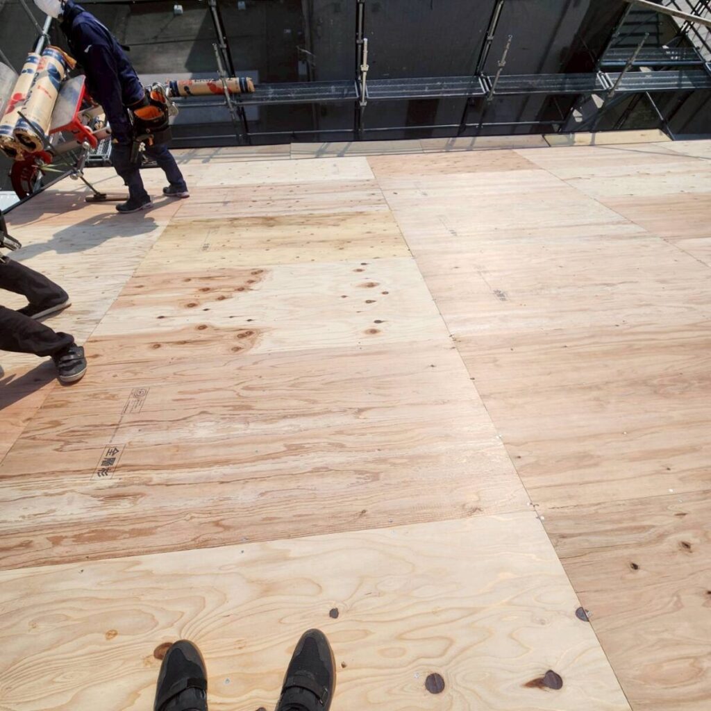 下地の交換後は、屋根材を撤去した既存ルーフィングの上から、新しい下地を施工していきます。