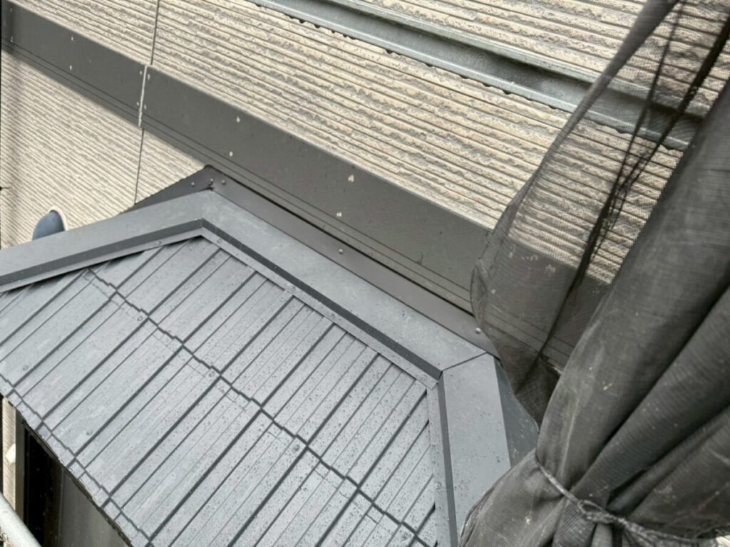 玄関ポーチの横に出窓があり、その出窓の屋根が下から見て目立つ位置にあるため、玄関ポーチの屋根だけがきれいになると、出窓の屋根だけがそのまま残ってしまい、見た目に違和感があるとのことでした。
