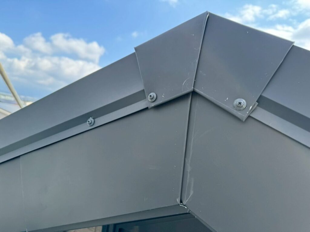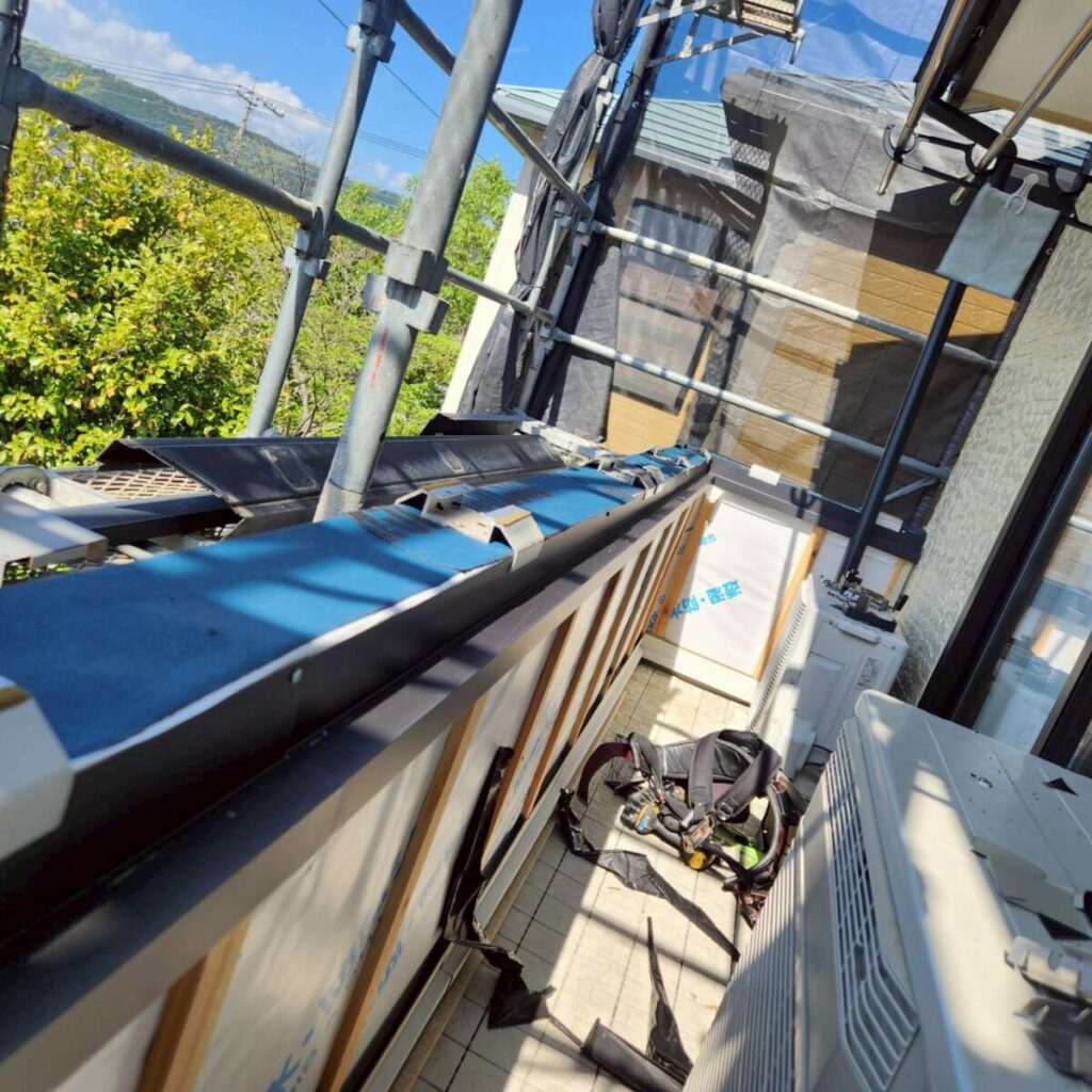 工事としては、まず下地を整えたうえで、その上に板金を取り付けていきます。