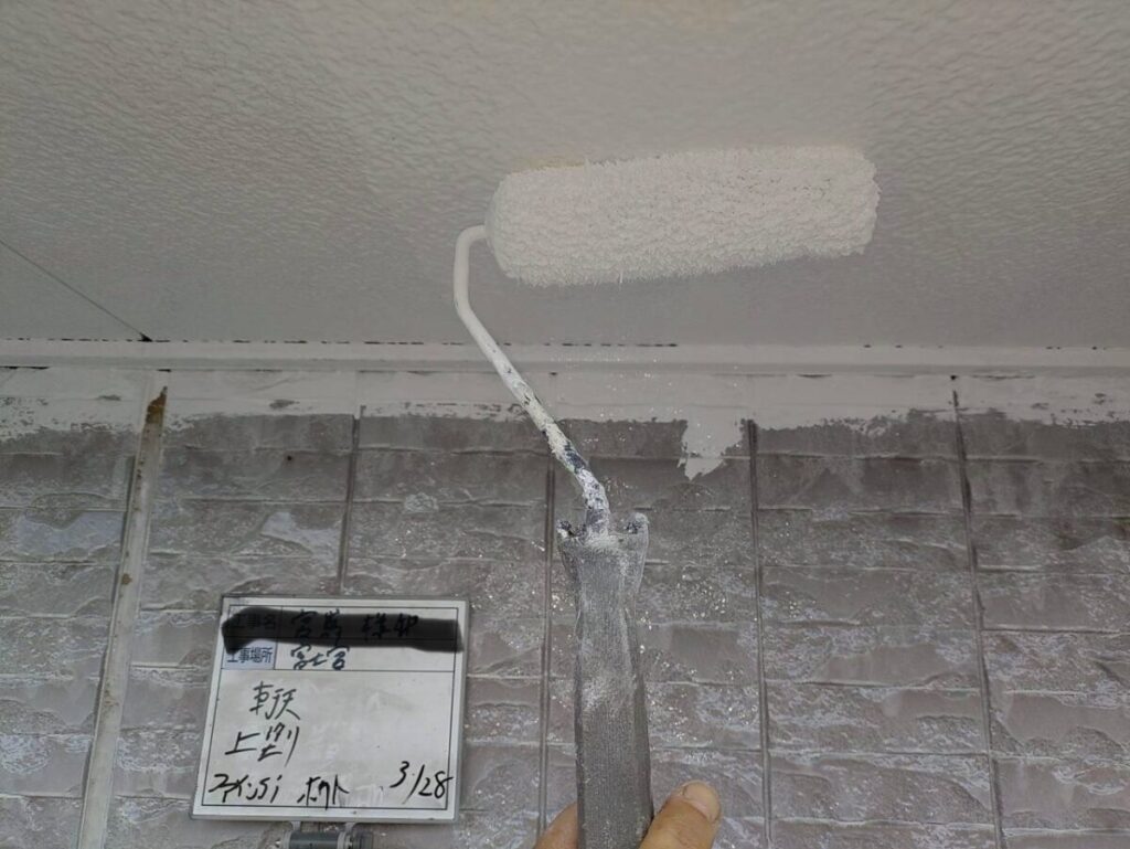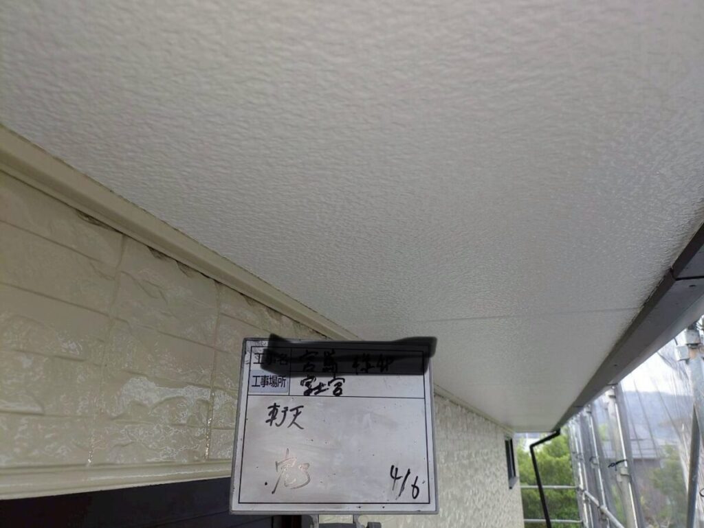 今回は、外壁以外の付帯部分としては軒天のみでしたので、工事内容は外壁塗装と軒天塗装となりました。