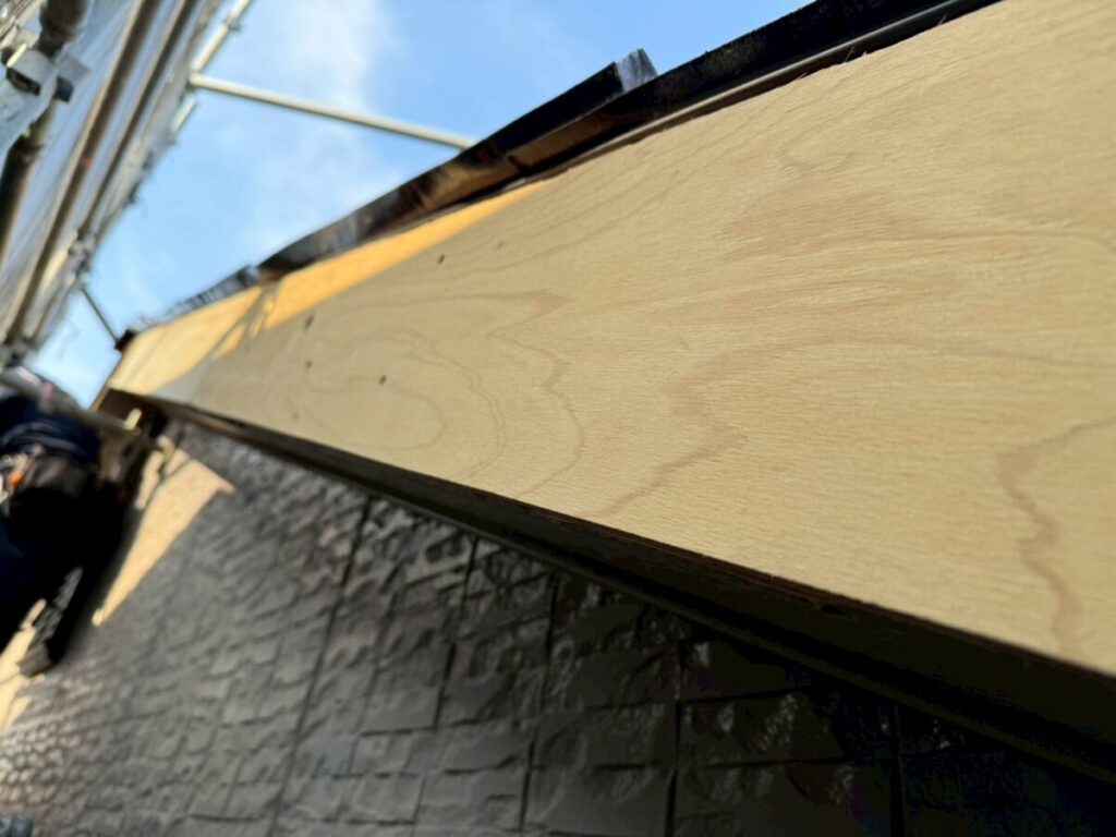 今回は、その塩ビ製の破風板を撤去し、新しく木下地を施工したうえで、板金でしっかりと納める工事内容で進めていくこととなりました。