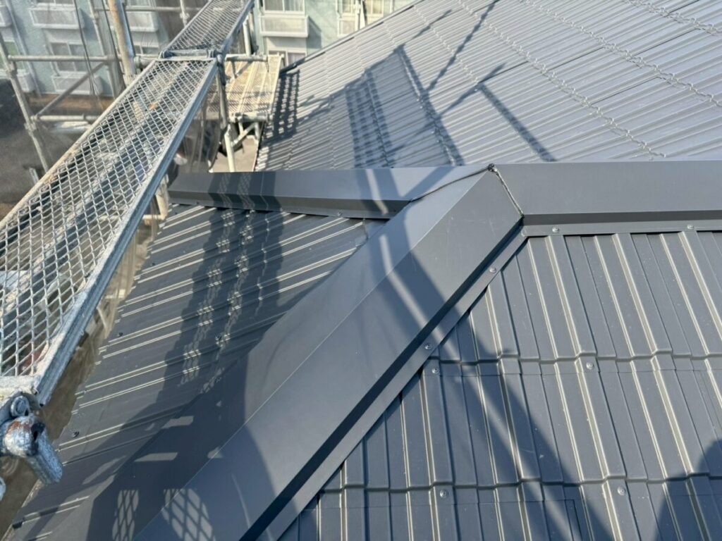 最終工程として棟板金を取り付け、工事は完了いたしました。