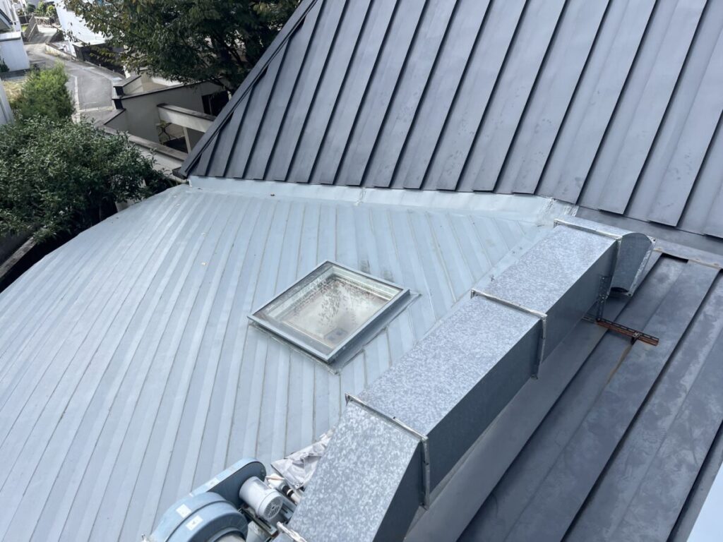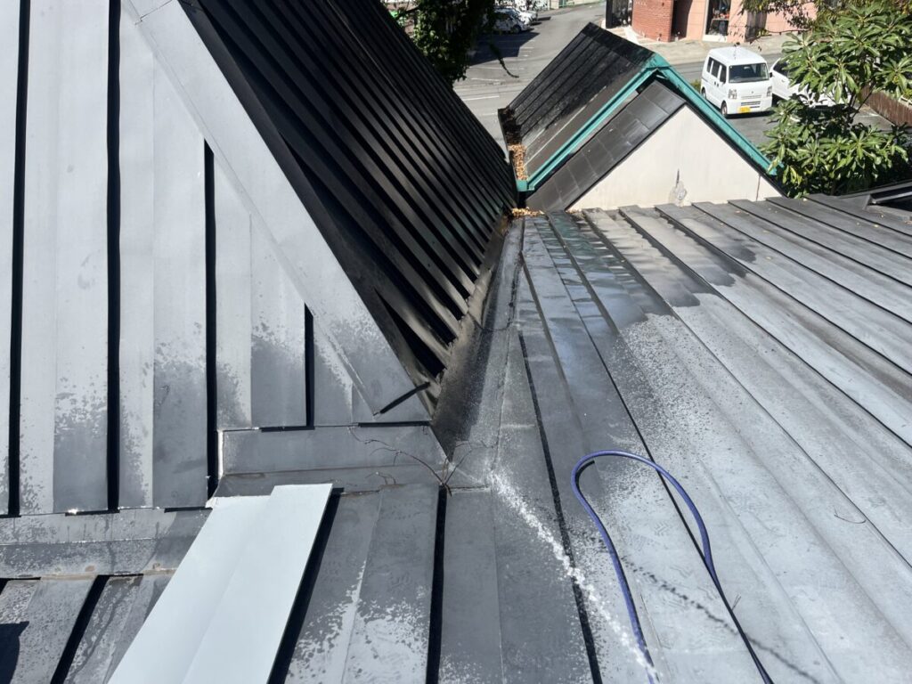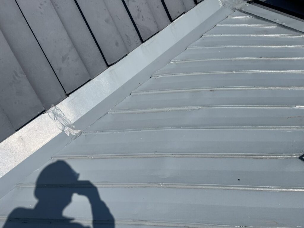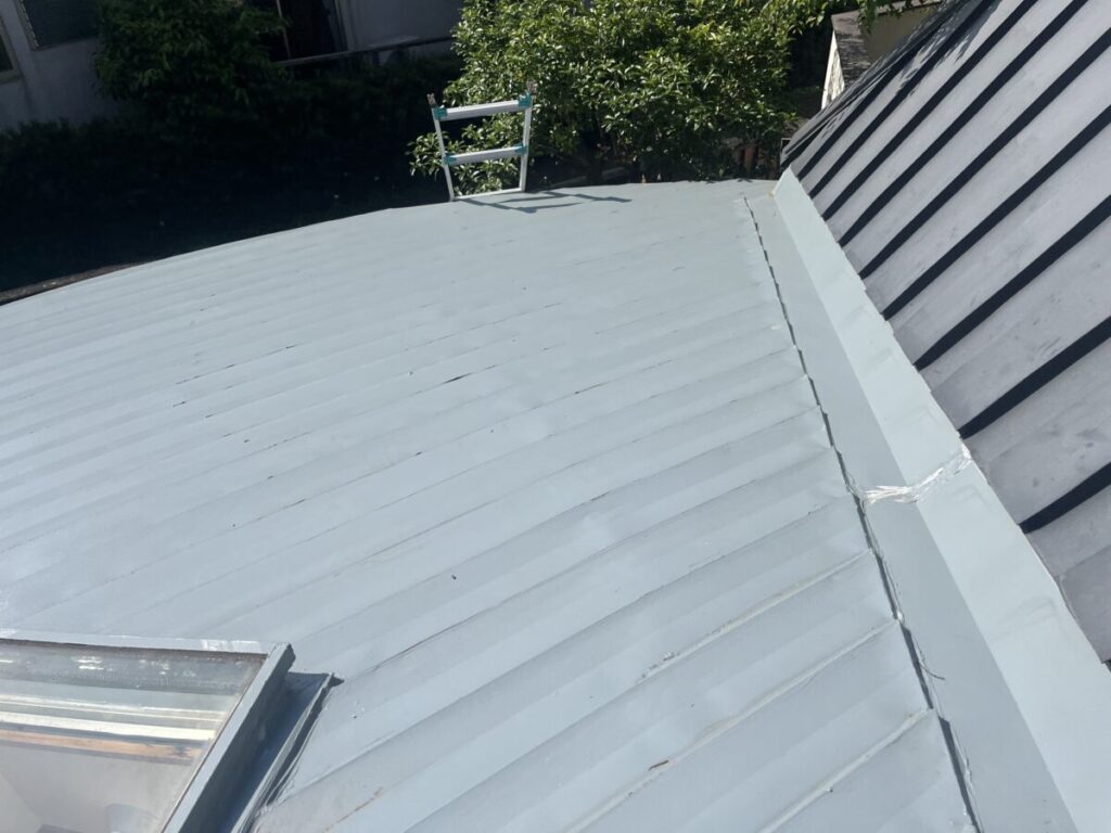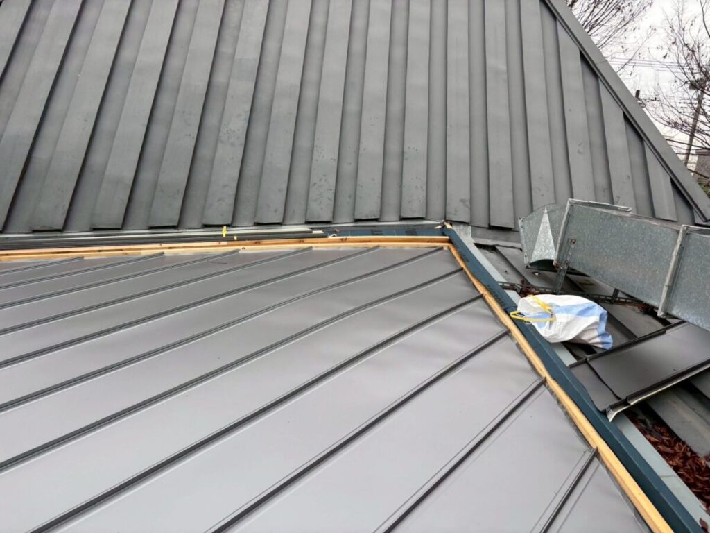 ちょっと複雑な屋根だったのですが無事に横葺きから立て葺にカバー工事が完成しました、本来は横葺きはデザイン性の要素が強く元々今回の現場でも使用してはいけない勾配であるのにも関わらず使用されていました、屋根の真ん中に天窓を入れる事とかも考えられての事だとは思いますが、それにしても収まりは強引な感じがあり今回の工事で天窓も無くなりスッキリと収まりも良くなったので今後は安心していただけます!