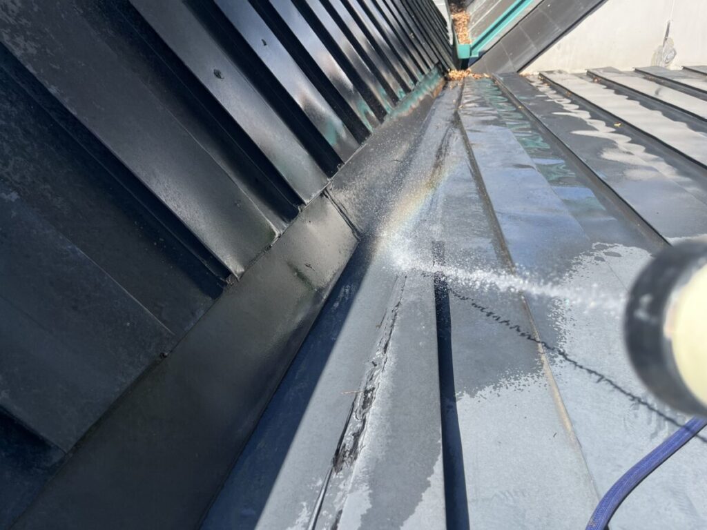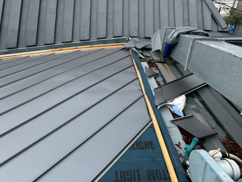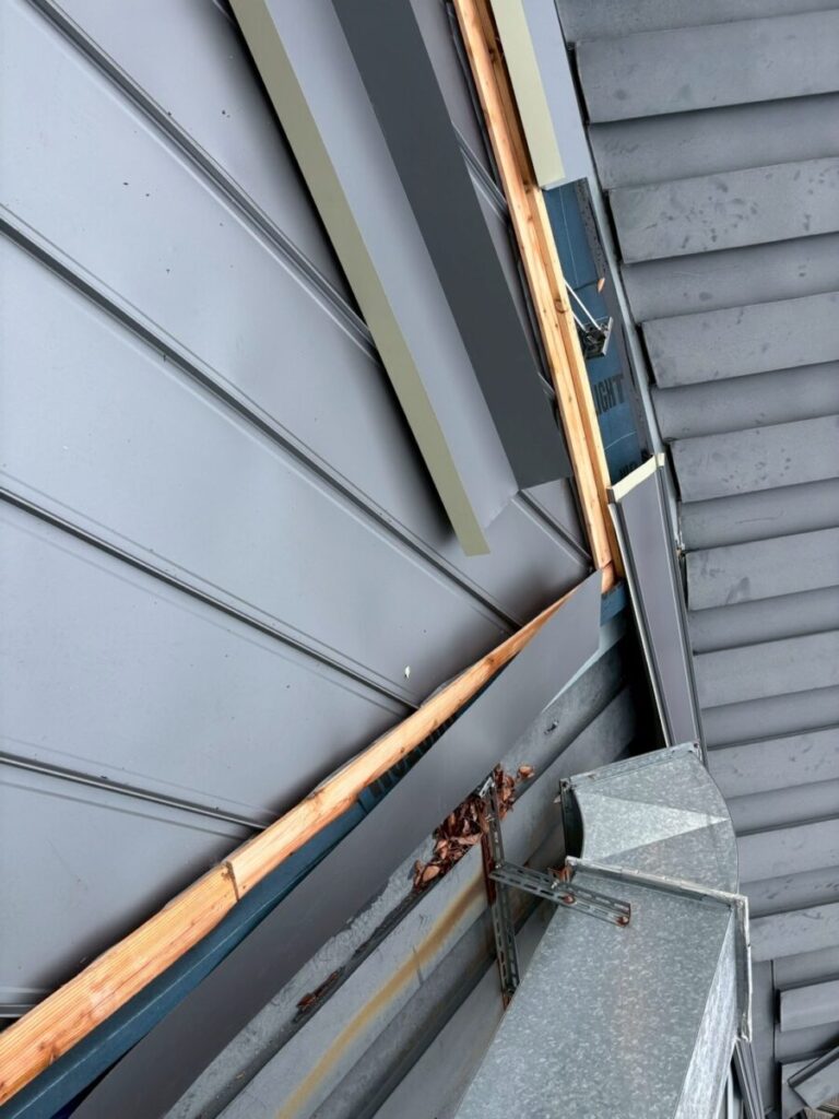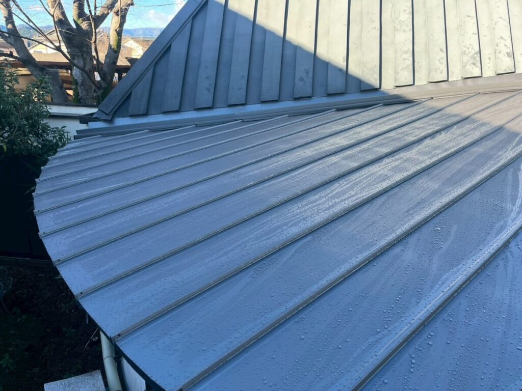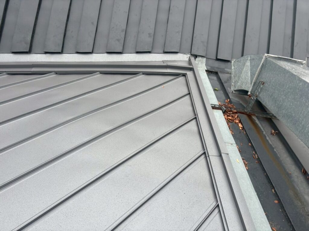 ちょっと複雑な屋根だったのですが無事に横葺きから立て葺にカバー工事が完成しました、本来は横葺きはデザイン性の要素が強く元々今回の現場でも使用してはいけない勾配であるのにも関わらず使用されていました、屋根の真ん中に天窓を入れる事とかも考えられての事だとは思いますが、それにしても収まりは強引な感じがあり今回の工事で天窓も無くなりスッキリと収まりも良くなったので今後は安心していただけます!