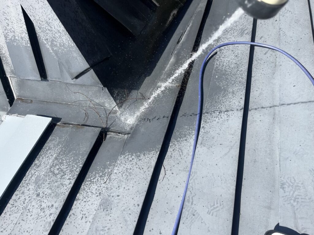 今回は地元の大きなパン屋さんなのですが、元々雨漏りの業者が何社か入って工事をしているのですが、雨漏りは直らず今回も雨漏り工事をする予定でしたが、不安な為に相見積もりで私共に連絡がありました、とりあえずは相手側が水掛け調査をやっているので、その工事内容でのお見積もりを致しましたが、内容が酷く屋根の頂点にある全く今回の水漏れ箇所とは関係ない明かり取りも原因だと言ってるとの事で、結果的に私共に工事をご依頼されましたが、水掛け調査はもう一度コチラでやってから工事に入らせていただく事で工事を受けさせていただきました。