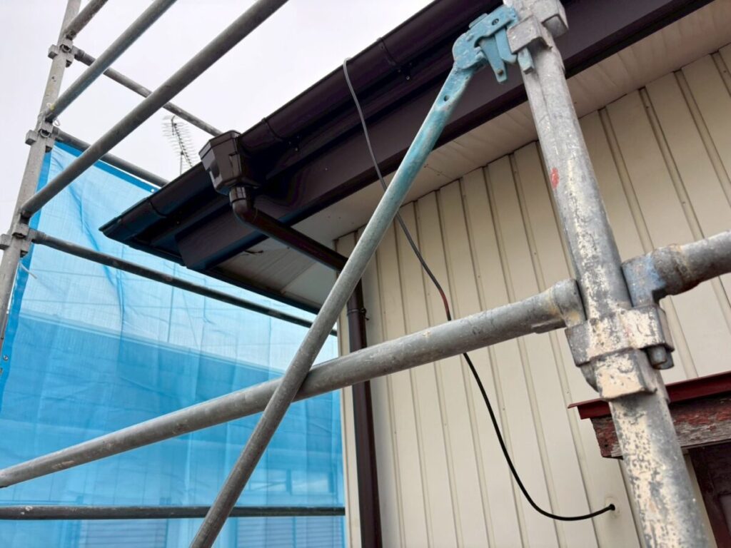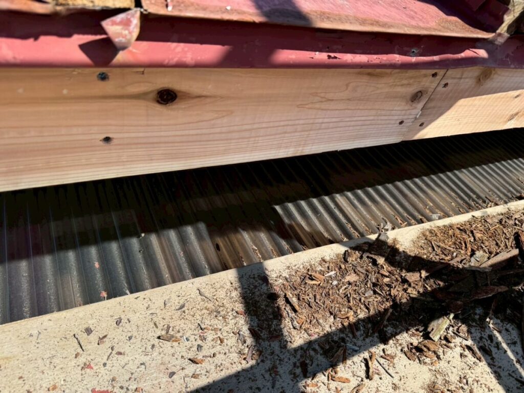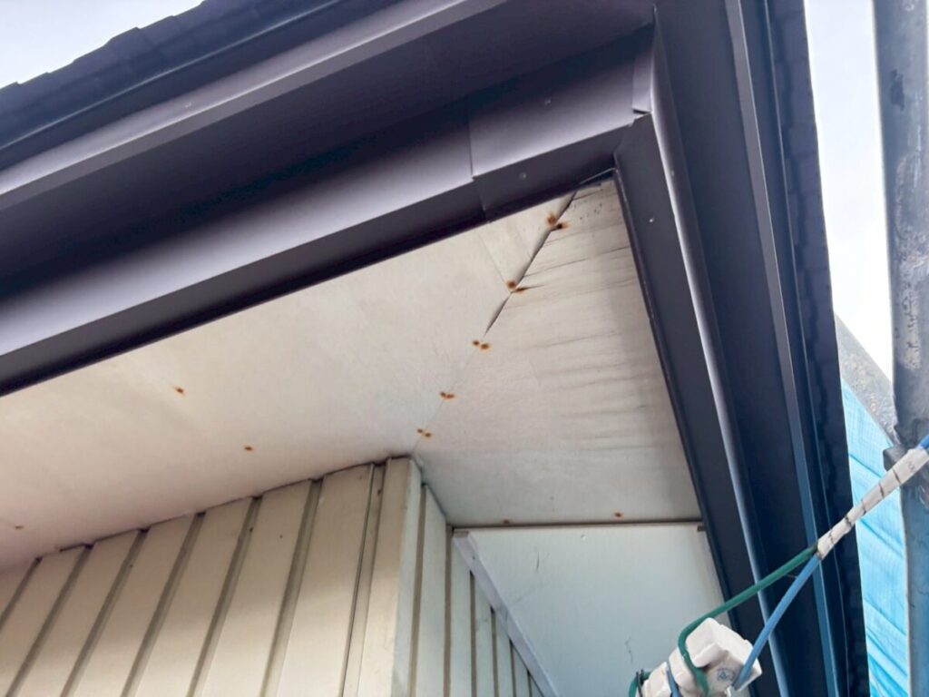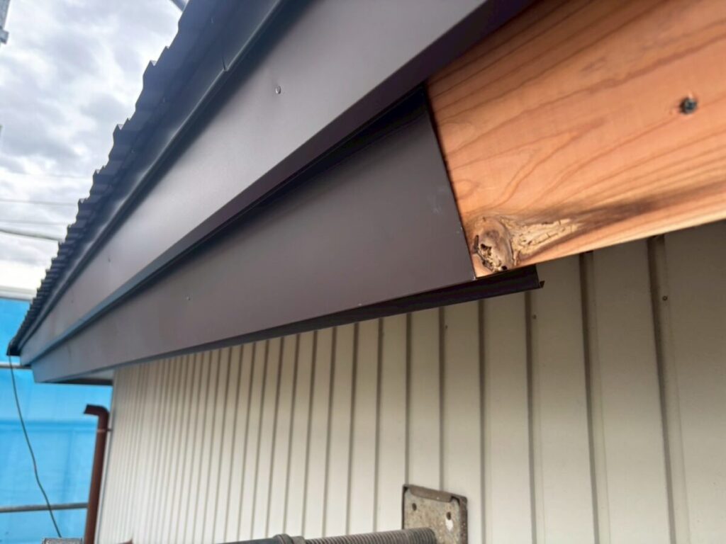 雨樋を取り外し鼻隠し板を新しく取り替えていきます、今回は雨樋を取り替えるので屋根の瓦棒を取り外しせずに嵩上げした感じで鼻隠しも二段にして、二段にした方に軒樋を付けると言うマックス建材さんの施工書通りにやる事としました、いつもは屋根の凹凸になっている桟を外してフラットにして合板を貼るので、解体の手間は省けるのですが逆に増える作業もあり、何方が良いかは微妙ですが空気層がより多く儲けられるのは確実に今回のやり方です。