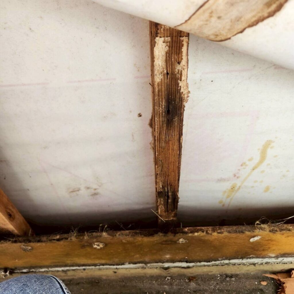 これまでにも、お客様は何とか直したいと思い、まずは家を建てた会社に相談されたそうです。しかし、結局改善はされず、その会社での修理は諦めることになったとのことでした。その後、別の業者に修理を依頼し、実際に工事も行ったそうですが、それでも雨漏りはまったく止まらなかったそうです。
