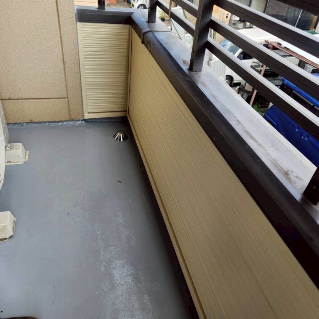 また、今回の工事では、バルコニー床の防水工事だけでなく、アルミ笠木下の防水部分までしっかりとやり直しています。表面だけをきれいに直した工事ではなく、雨漏りの原因となる部分を一つ一つ確認しながら根本から手を入れた内容です。そのため、今回の雨漏りはこれで完全に止まると判断しております。