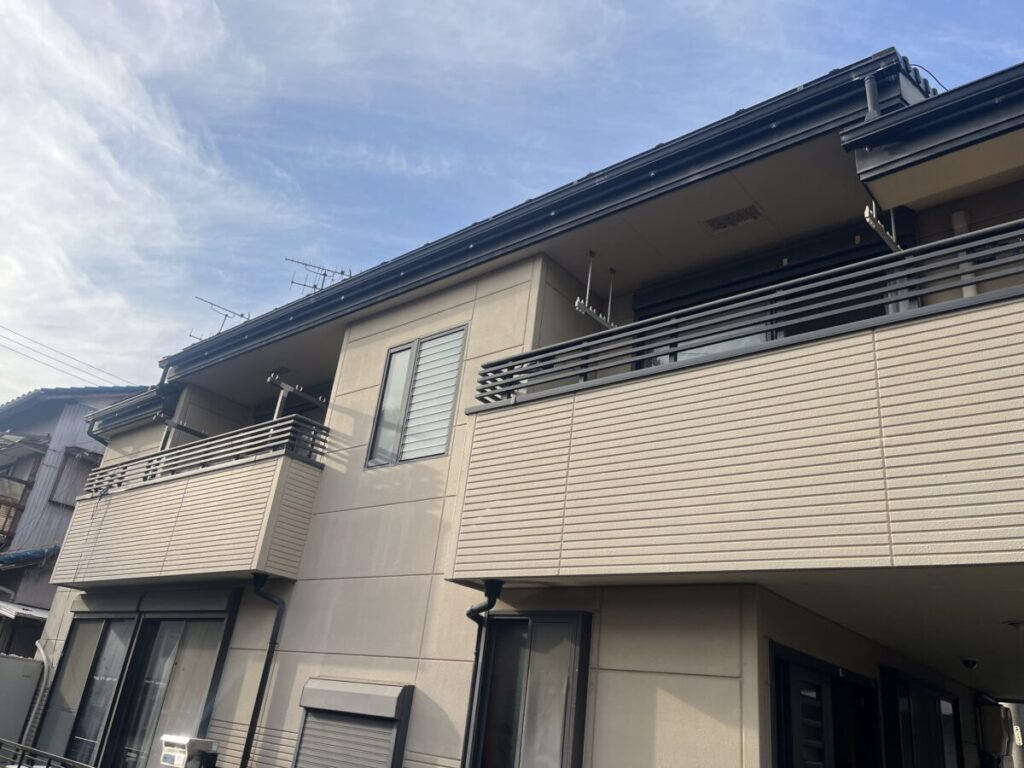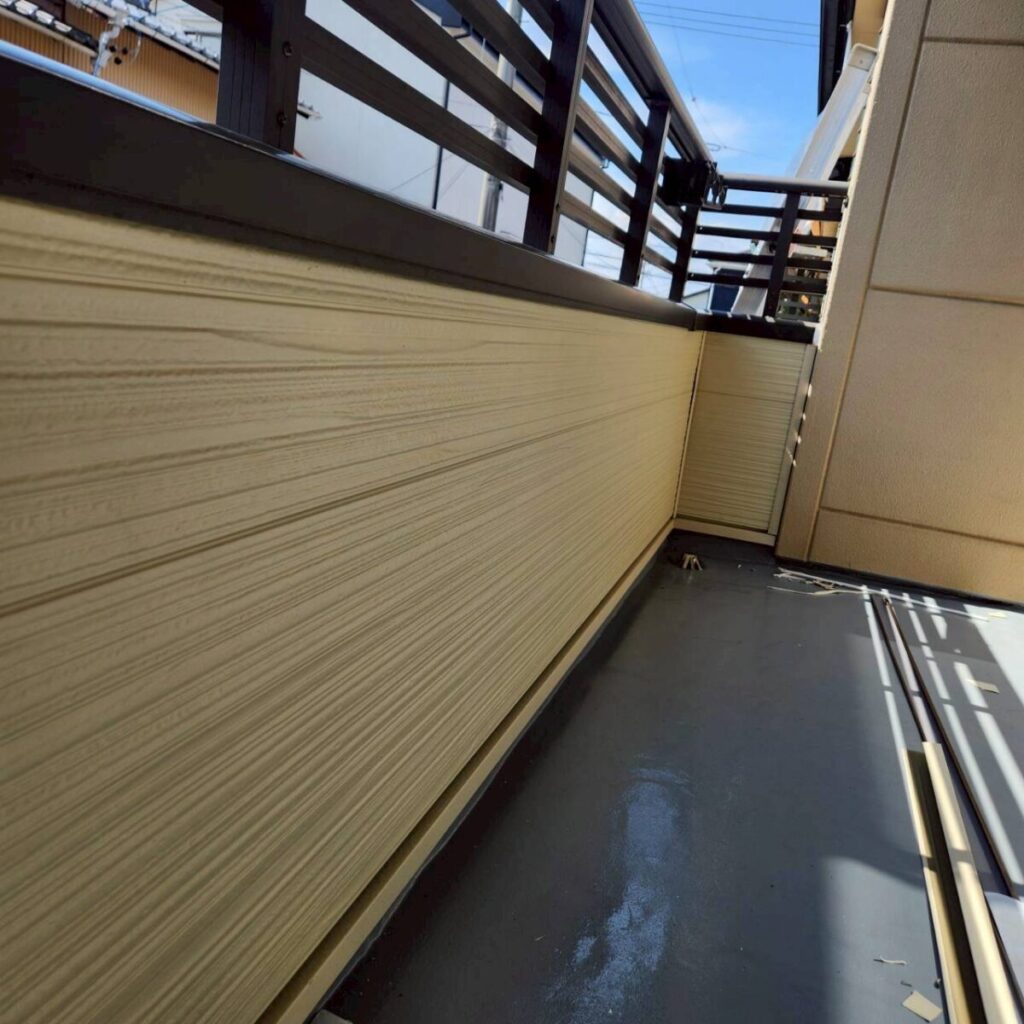 もともとこの部分には窯業系サイディングが貼られていましたが、ここは屋根がかかっていないため、雨の影響を受けやすい場所です。そのため、今後の耐久性を考えると、水に強い金属サイディングの方が適していると判断しました。今回はその点を考慮し、アルミ笠木下部分を金属サイディングで仕上げています。