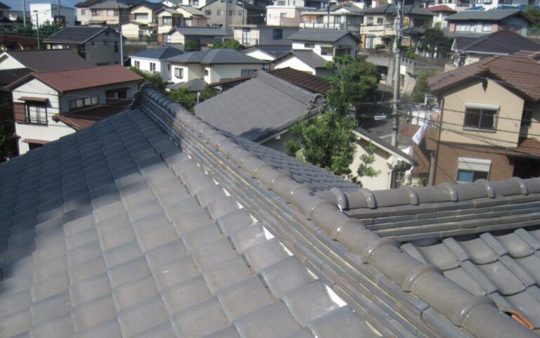 のし瓦は、棟の一番上にかぶせる冠瓦の下に積んである平たい瓦のことです。この段数によって、棟の高さや見た目、そして重さが変わります。昔の家だと、6段や7段と高く積んであることも珍しくありません。見た目はどっしりして立派ですが、その分どうしても重量は増えます。長年の地震や振動でズレやすくなる原因にもなります。最近は3段程度で納めることが多く、耐震性を考えてあえて段数をなくす0段のケースもあります。もともと5段だった棟を0段にして軽くする、というのもよくある工事です。ただ、段数を減らせばいいという話でもありません。屋根全体の見た目のバランスや、既存の高さとの兼ね合いもあります。周囲との見た目が不自然にならないようにすることも大切です。棟は屋根の一番高い部分で、風や地震の影響を受けやすい場所です。だからこそ、見た目だけでなく、これから先の安心も考えて段数を決めることが大事だと思います。