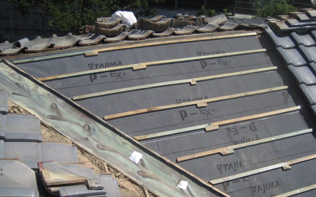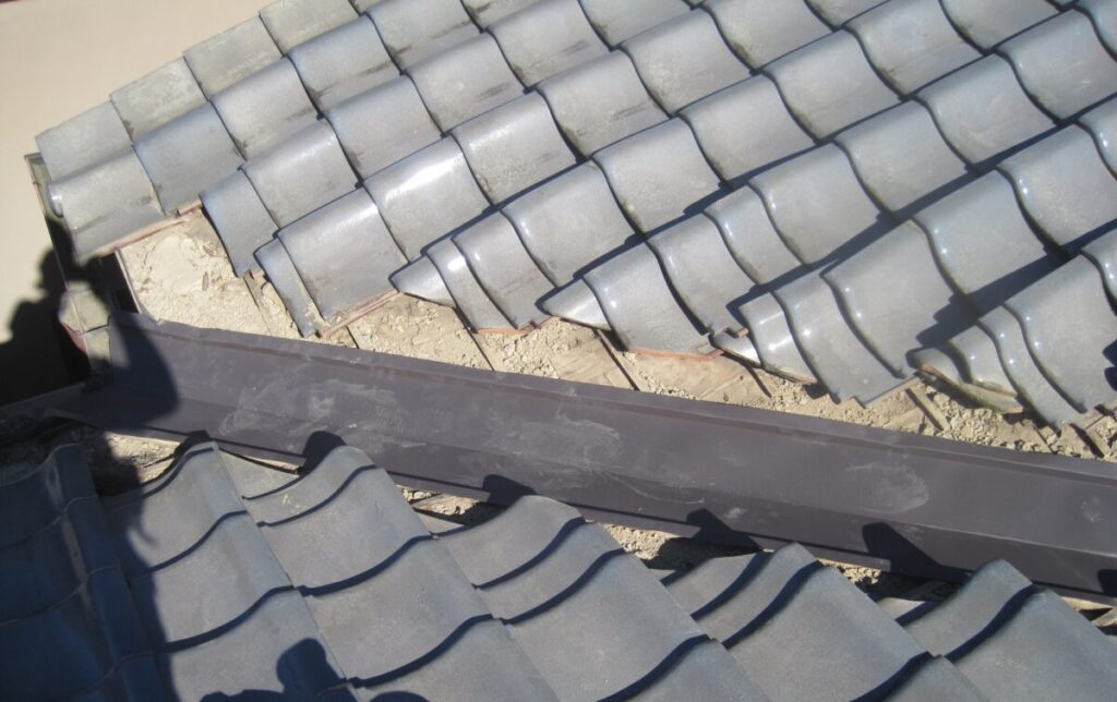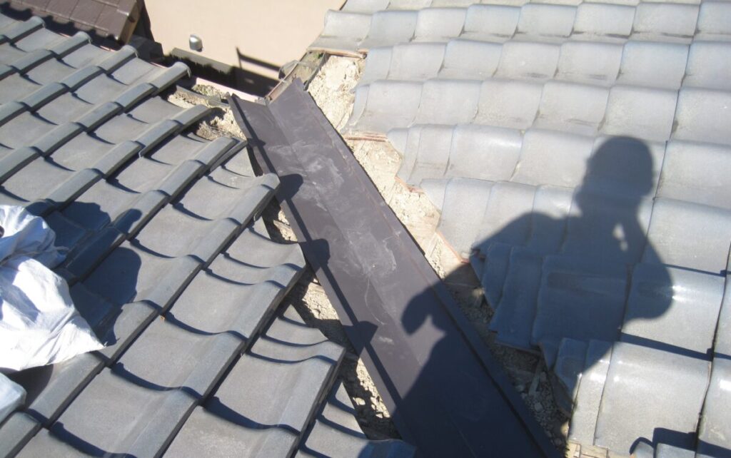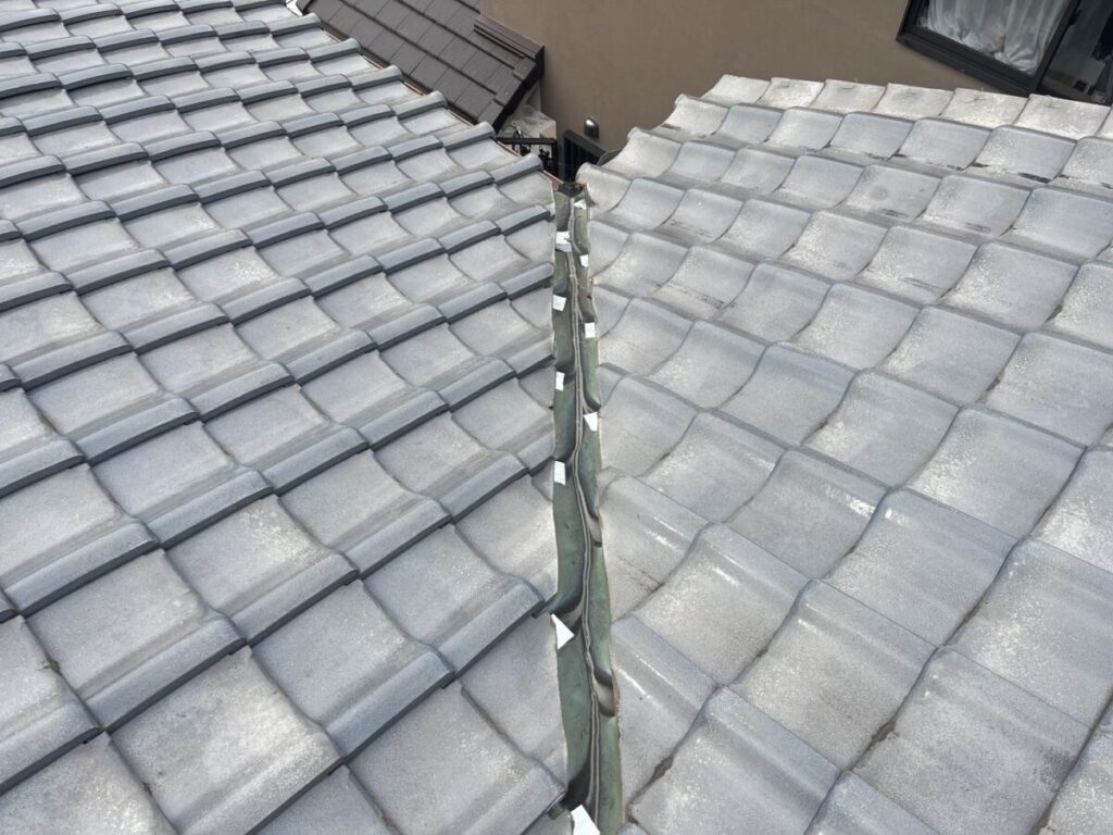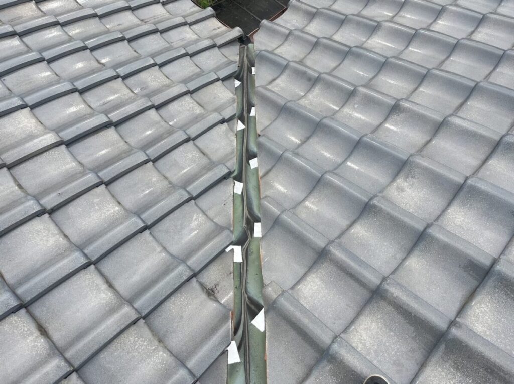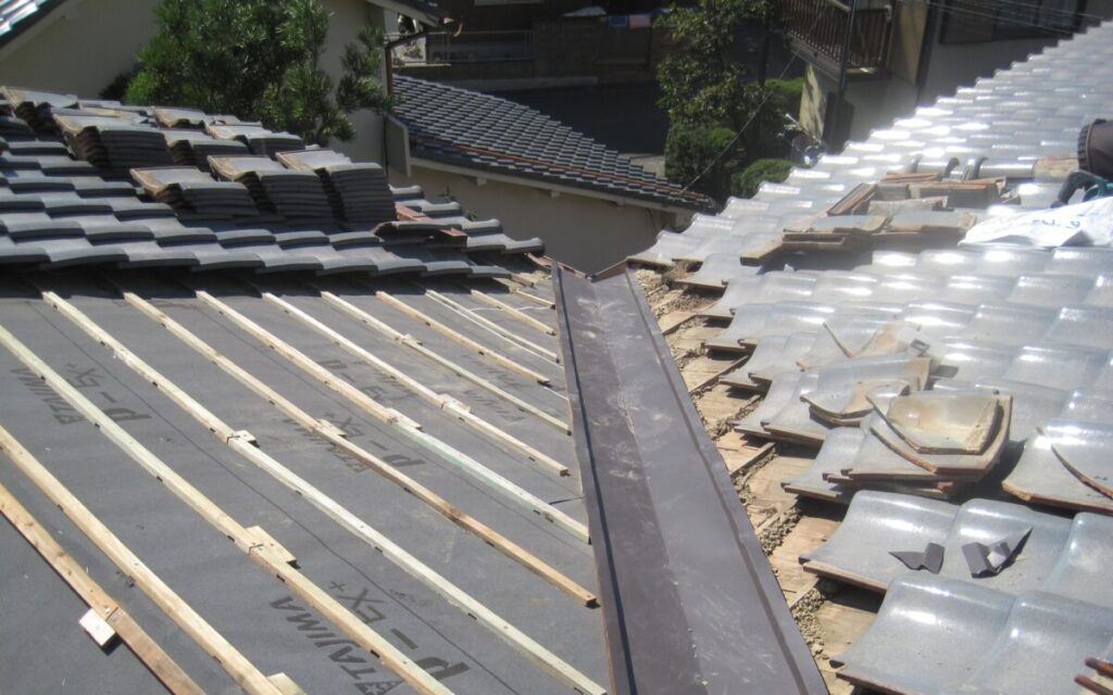 屋根瓦の葺き直しと谷板金交換施工工程