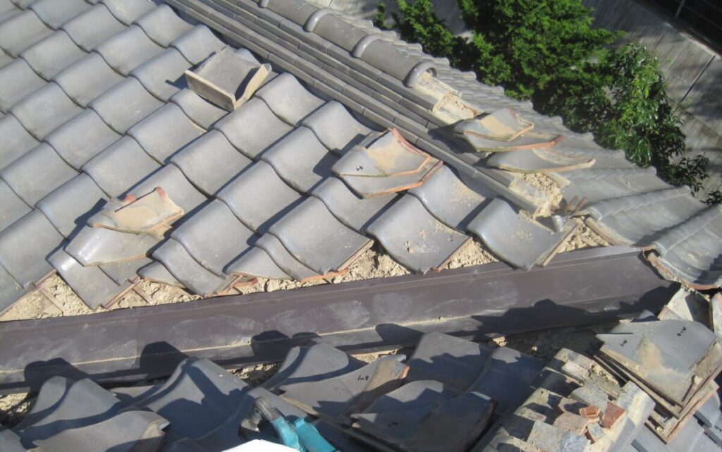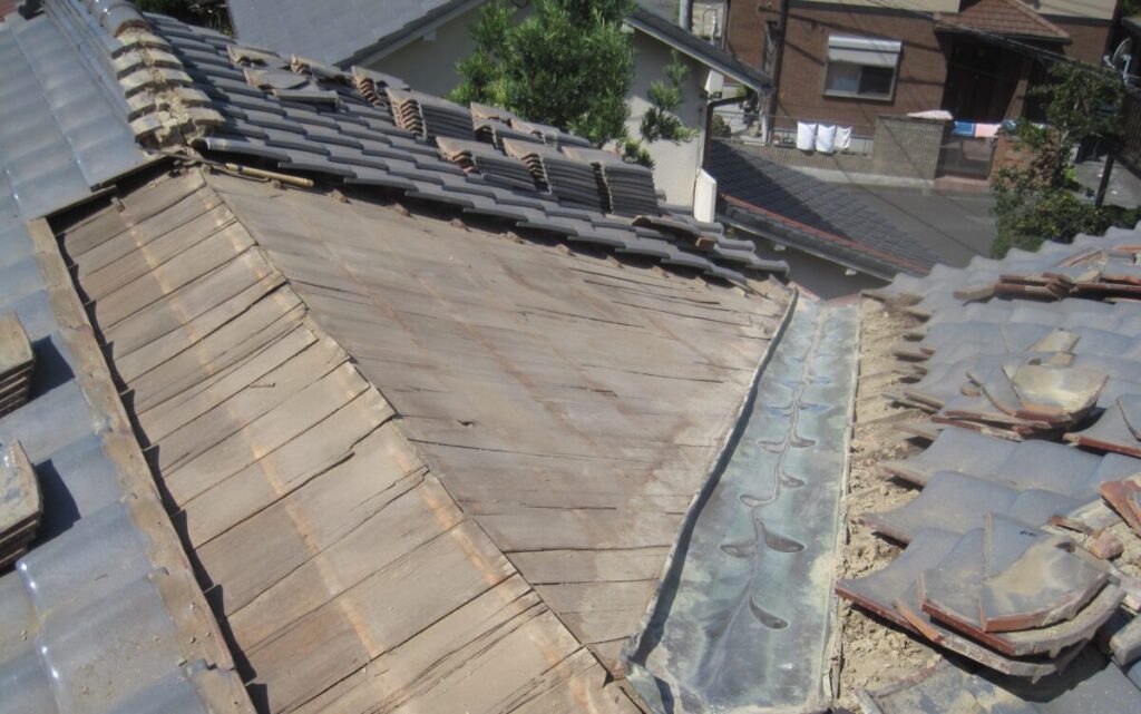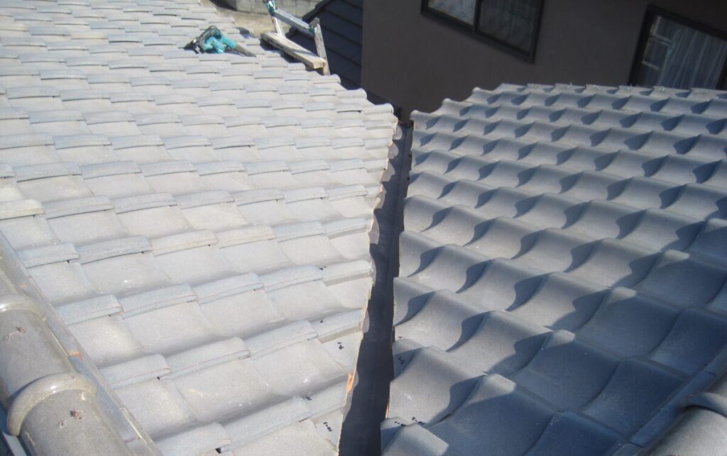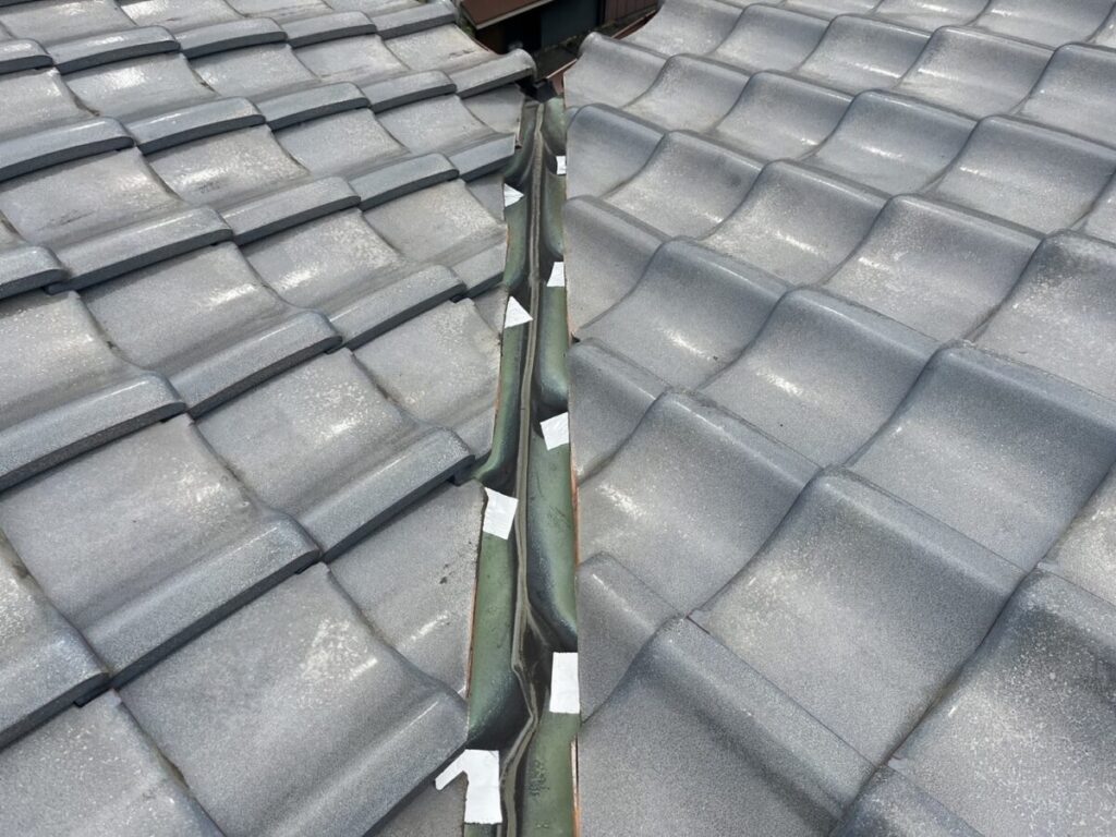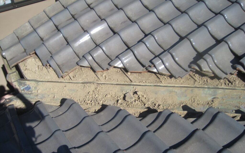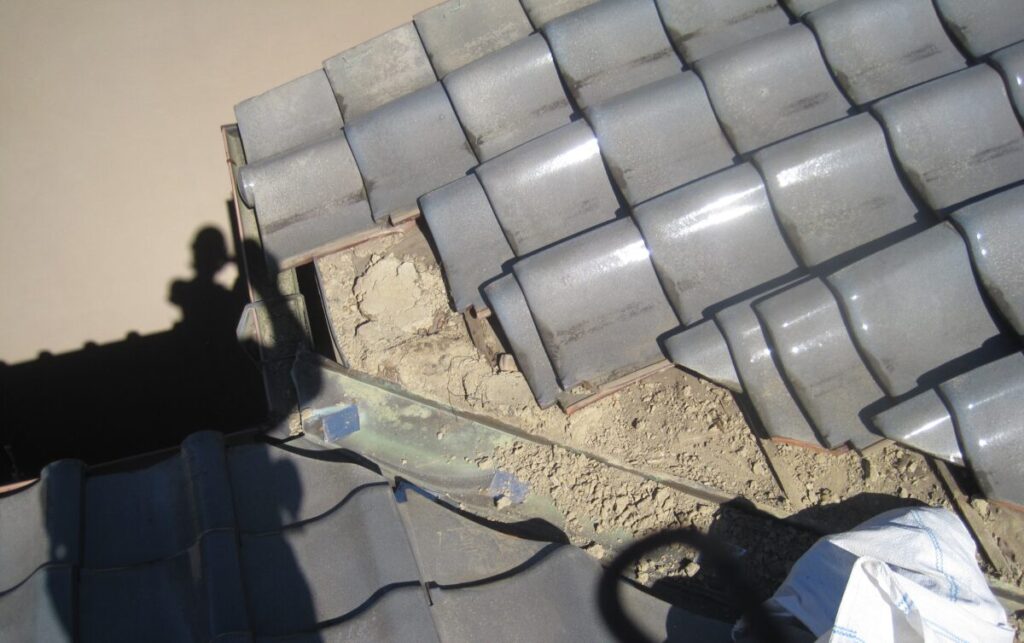 屋根瓦の葺き直しと谷板金交換施工工程