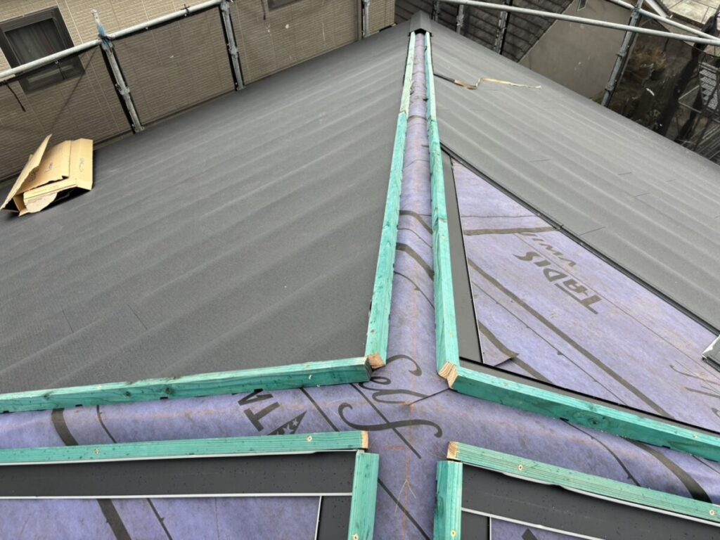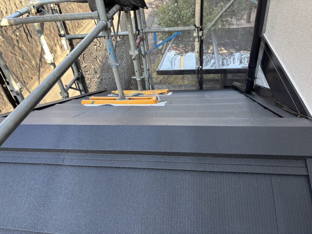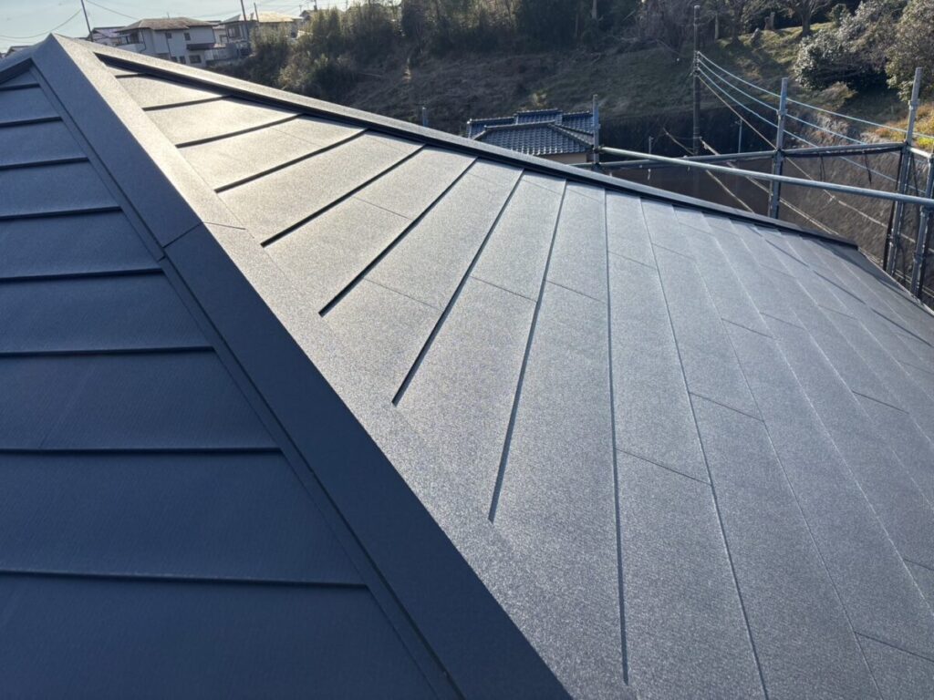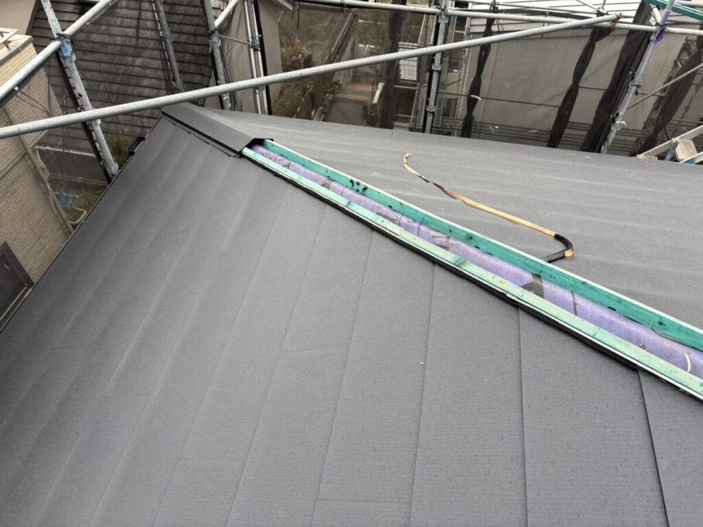 静岡県三島市で化粧スレートの上にガルバリウム鋼板の屋根材をカバー工法で重ね葺き工事をおこないました。