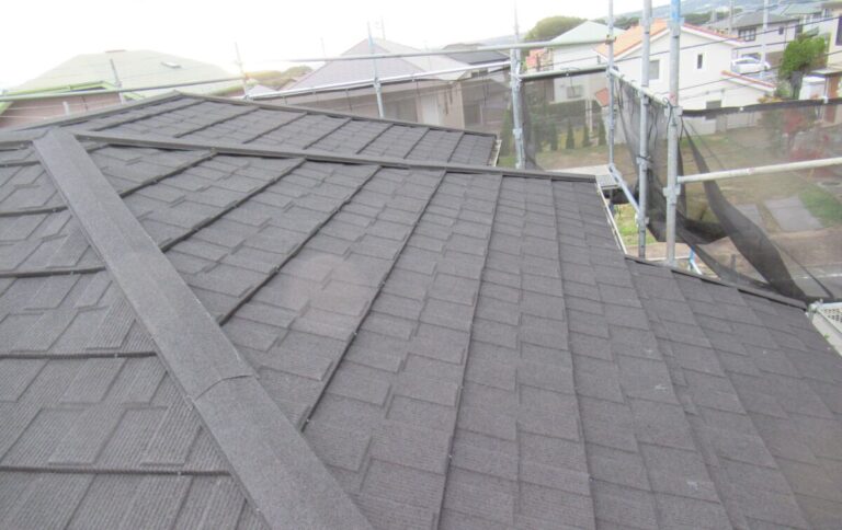 すべての工程が完了し屋根のカバー工法工事が無事仕上がりました。これで屋根材の落下や飛散の心配もなくなり今後は長期間安心してお住まいいただけます。